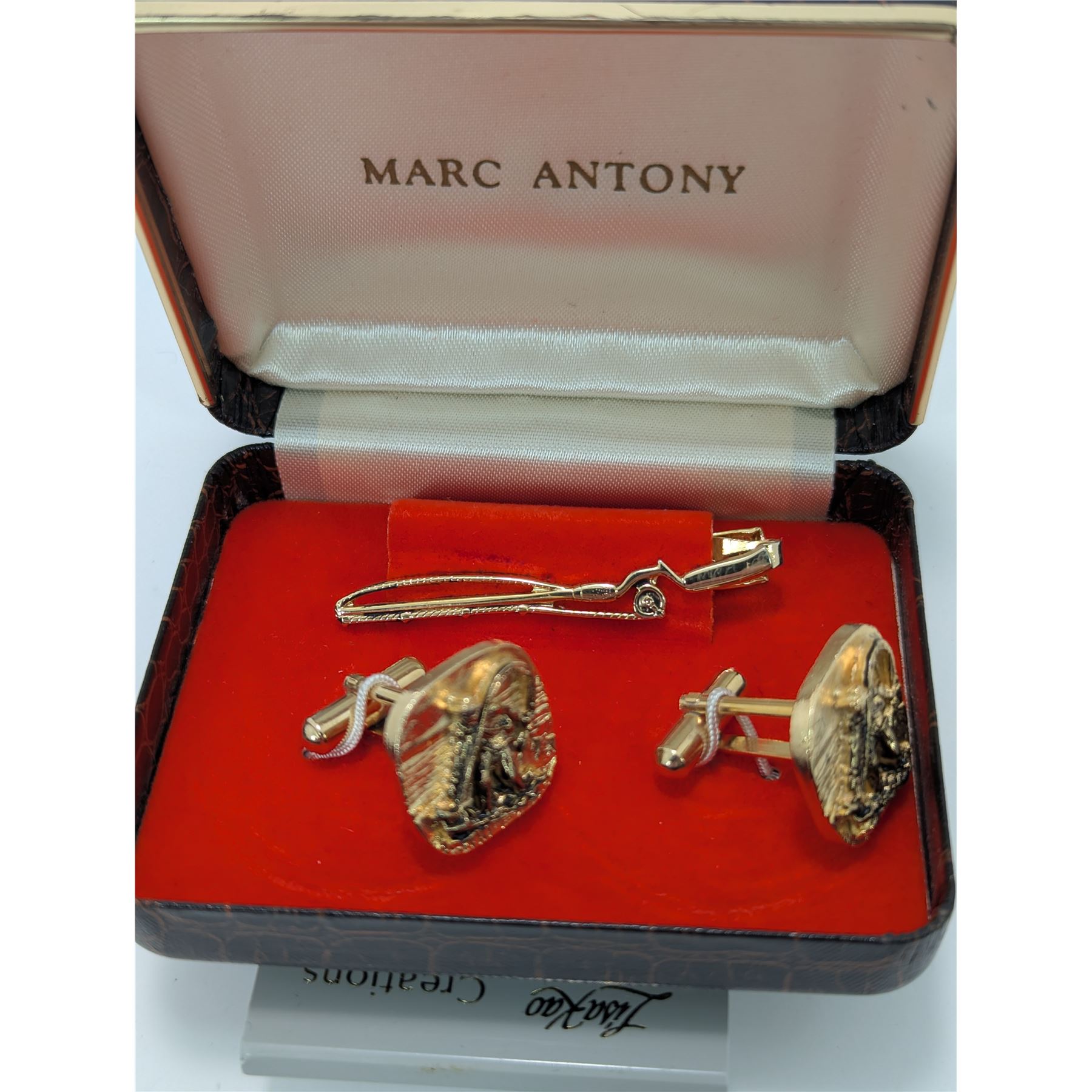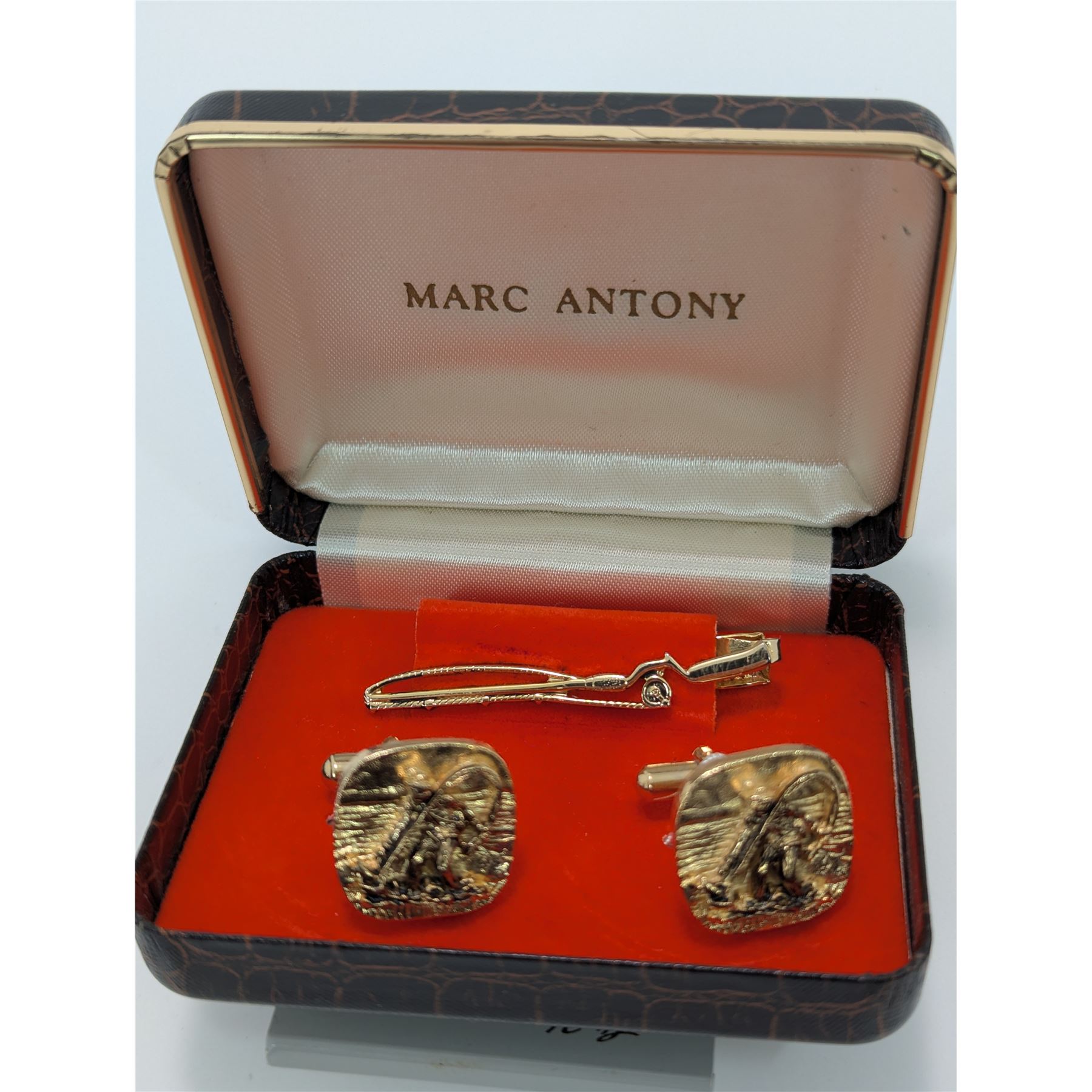 MARC ANTONY FLY FISHING MOTIF CUFFLINKS in Alligator skin case.