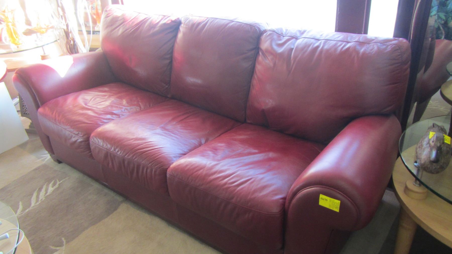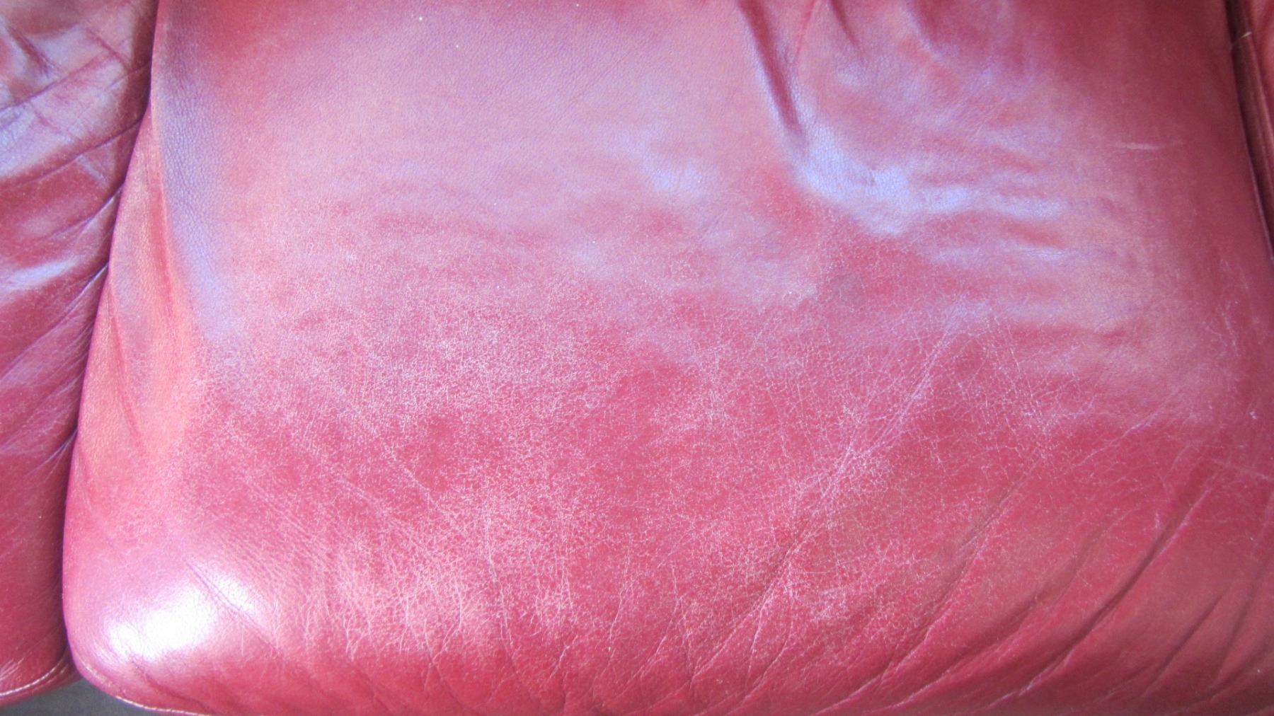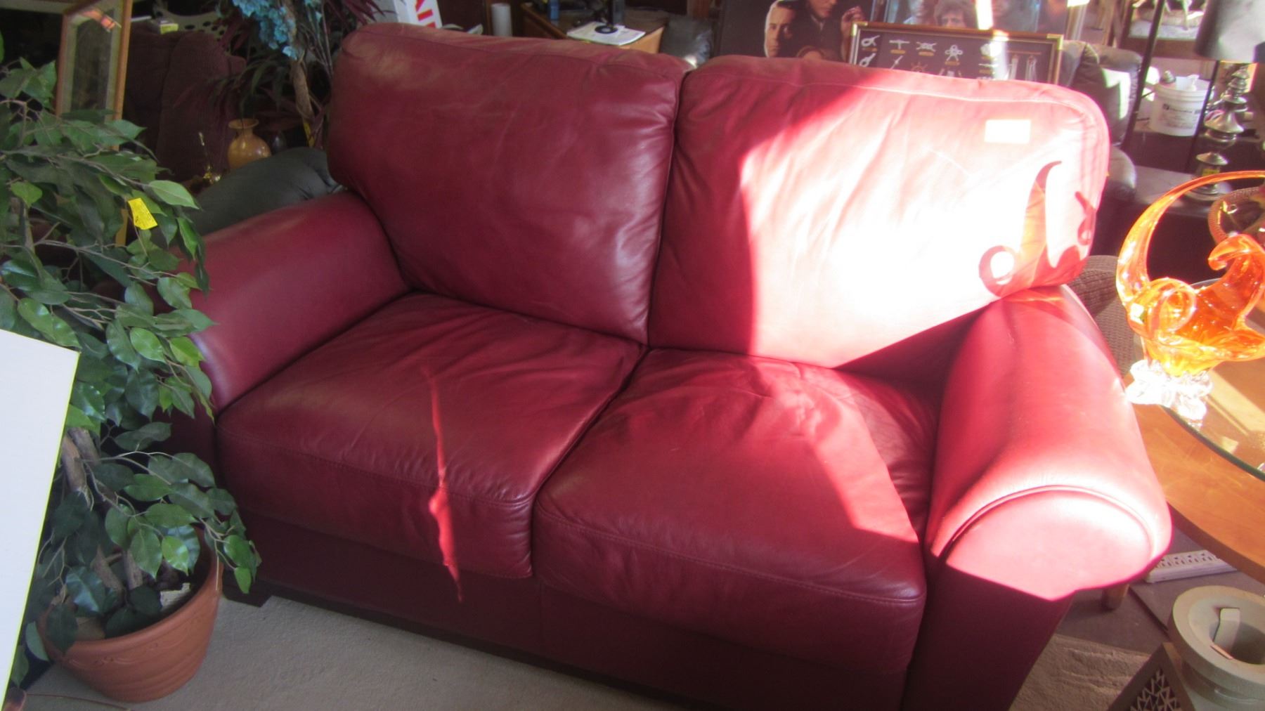 MAROON LEATHER SOFA AND LOVE SEAT