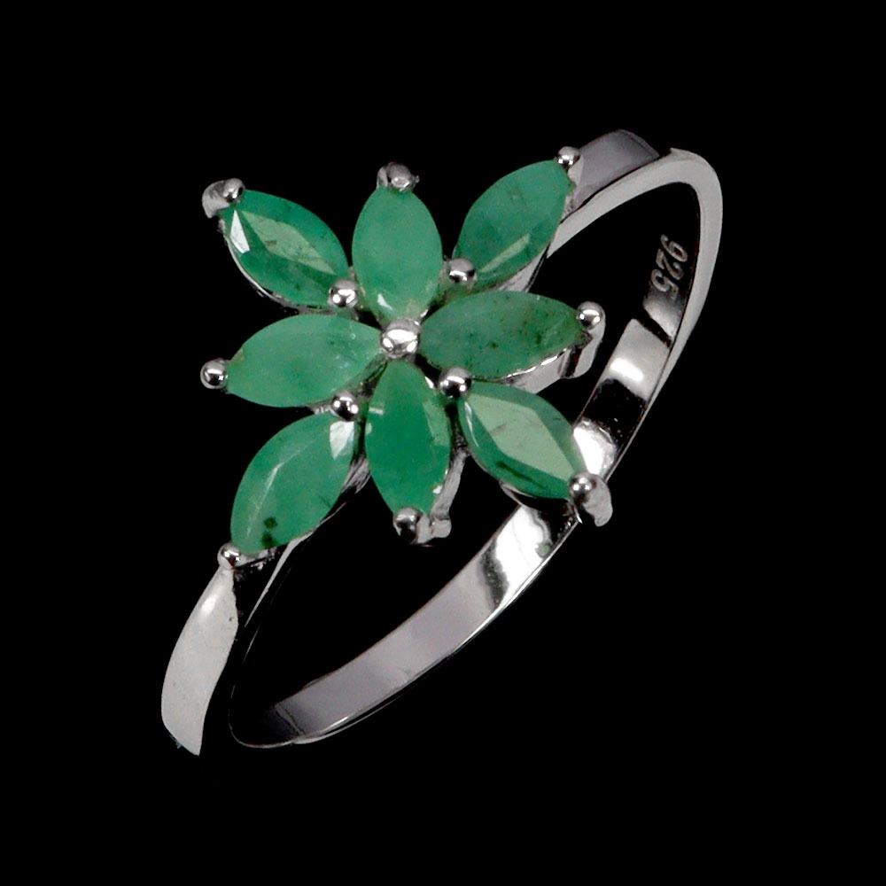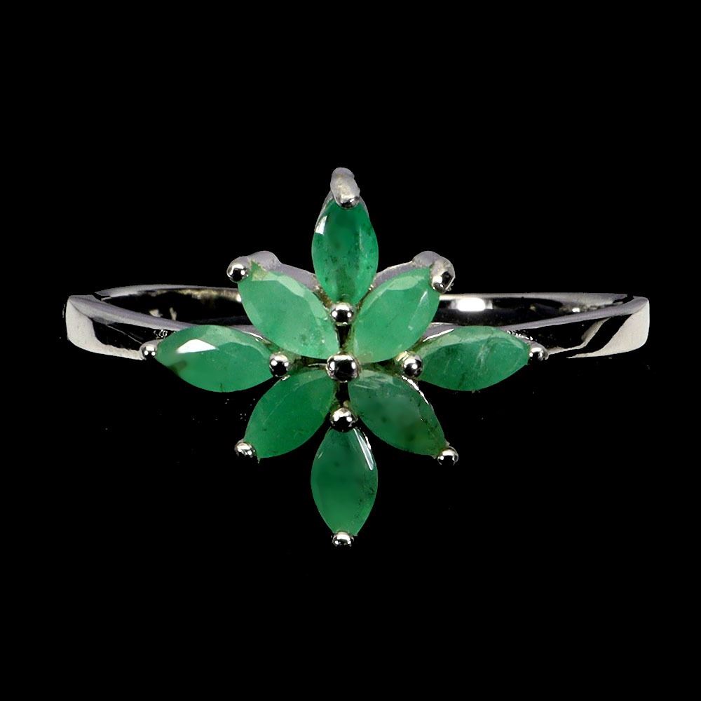 MARQUISE CUT EMERALD RING IN 14K WHITE PLATED GOLD OVER 925 STERLING SILVER - SIZE 8 - APPRAISED REPLACEMENT VALUE