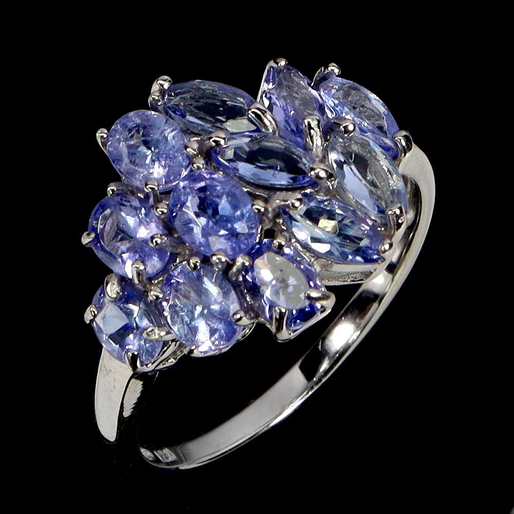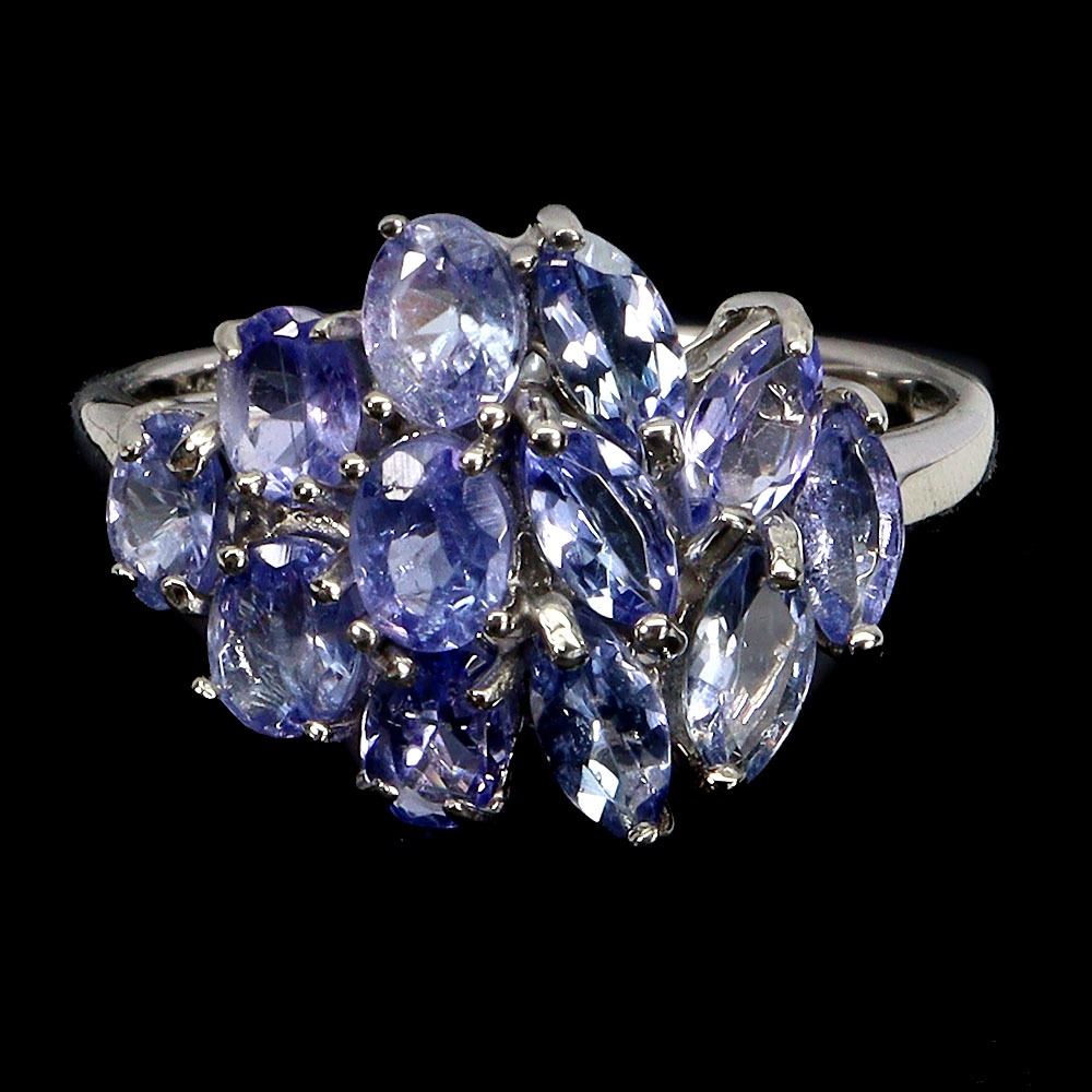 MARQUISE CUT TANZANITE RING IN 14K WHITE PLATED GOLD OVER 925 STERLING SILVER - SIZE 6.5 - APPRAISED REPLACEMENT VALUE