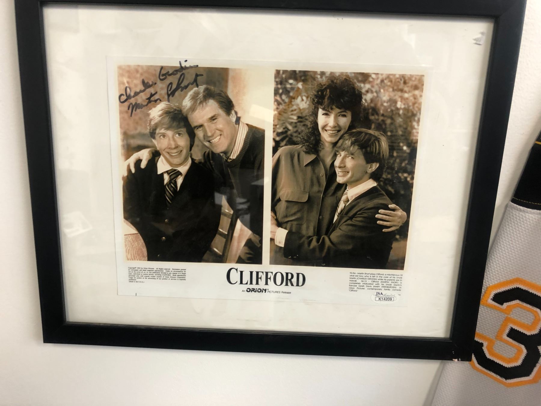 MARTIN SHORT AND CHARLES GRODIN SIGNED CLIFFORD LOBBY CARD (JSA COA)