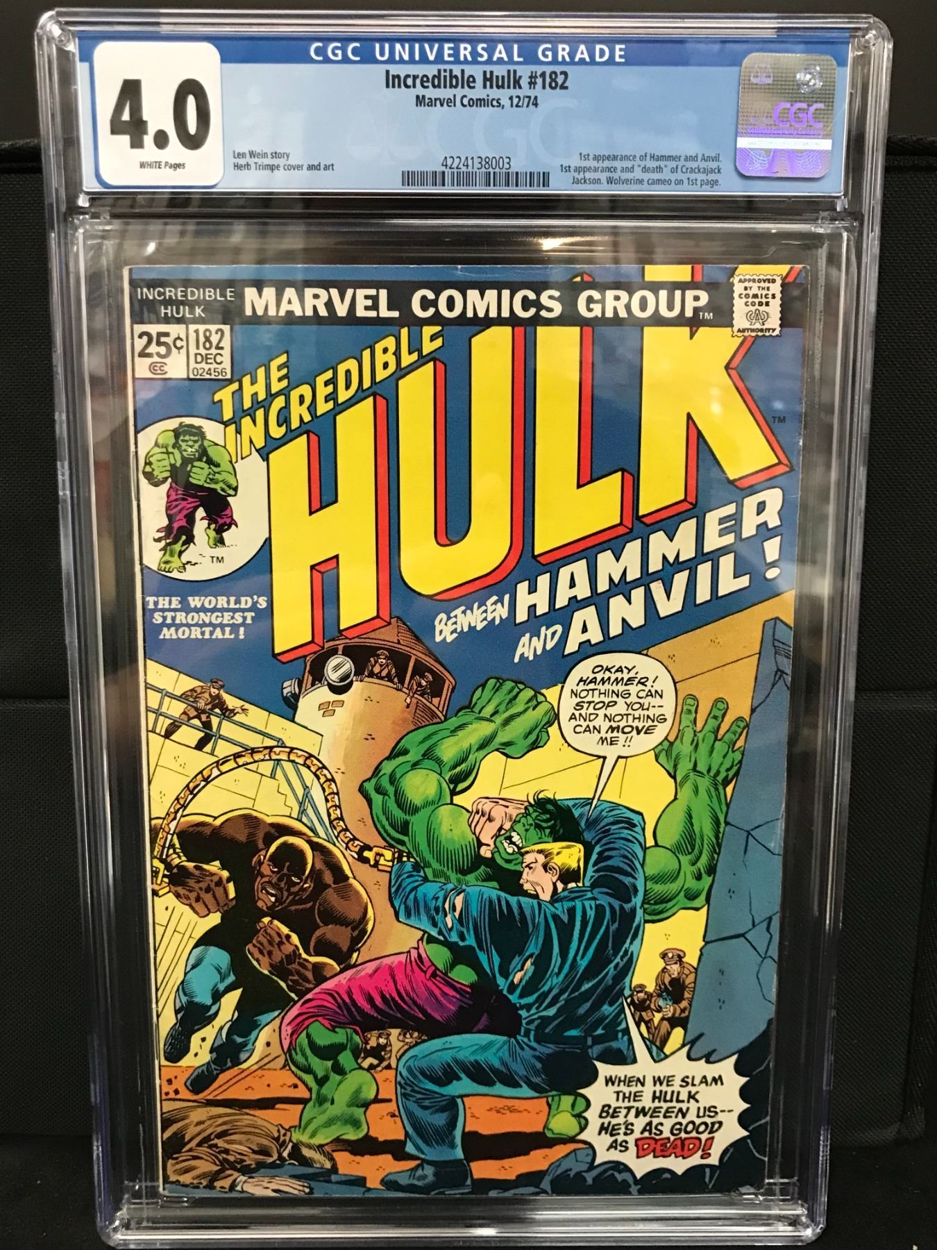 MARVEL COMCIS NO.182 THE INCREDIBLE HULK CGC GRADED 4.0