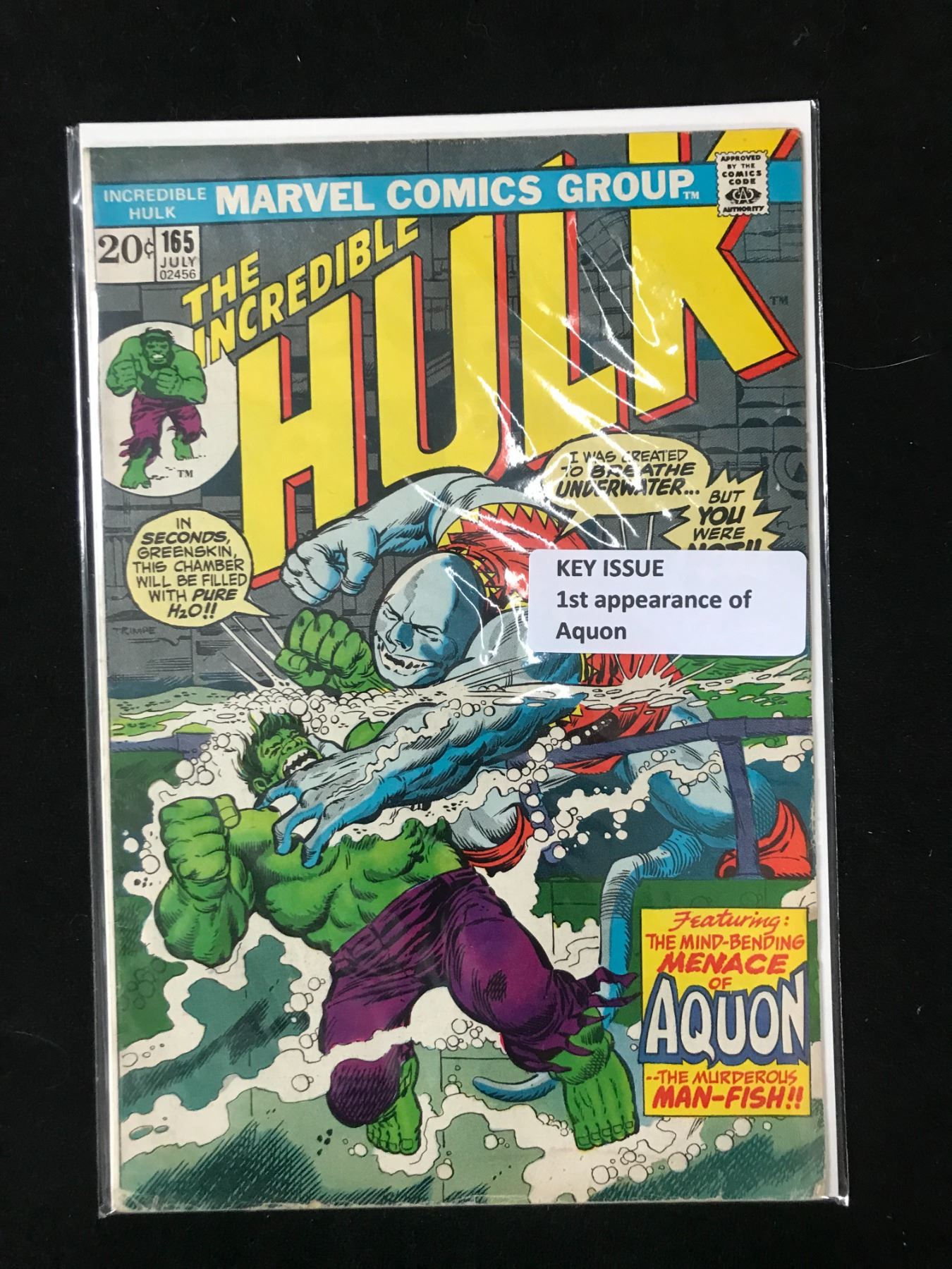 MARVEL COMICS NO.165 THE INCREDIBLE HULK (1ST APP AQUON)