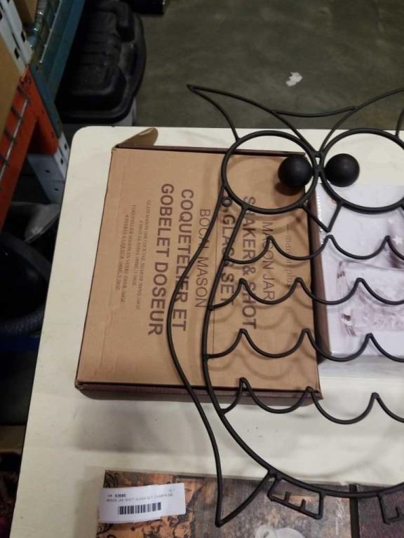 MASON JAR SHOT GLASS SET, CHAMPAGNE GLASSES, CANVAS PRINTS, METAL OWL ART