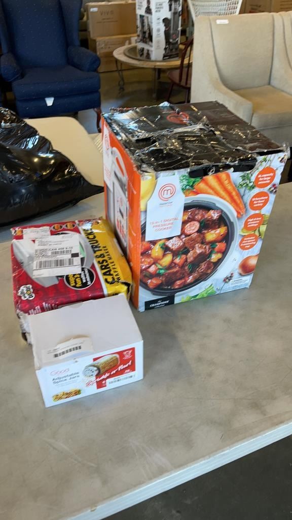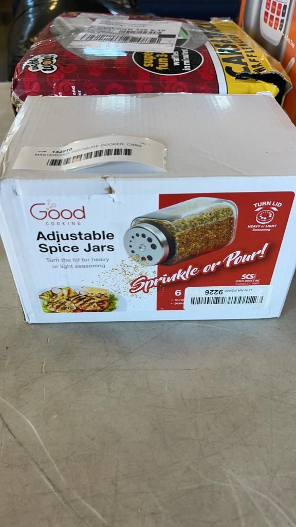 MASTERCHEF PRESSURE COOKER, CARS AND TRUCKS WAFFLE MAKER, AND ADJUSTABLE SPICE JARS
