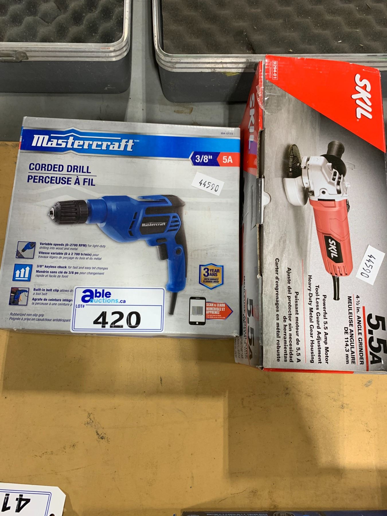 MASTERCRAFT 5 AMP 3/8 INCH CORDED DRILL WITH VARIABLE SPEED & SKIL 5.5 AMP 4-1/2 INCH CORDED ANGLE GRINDER