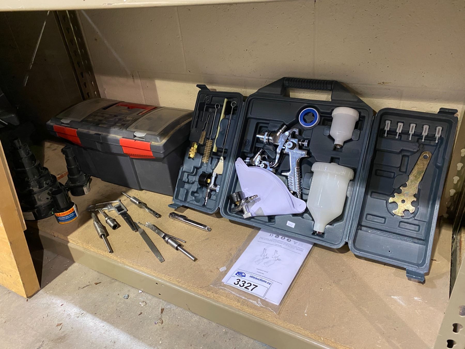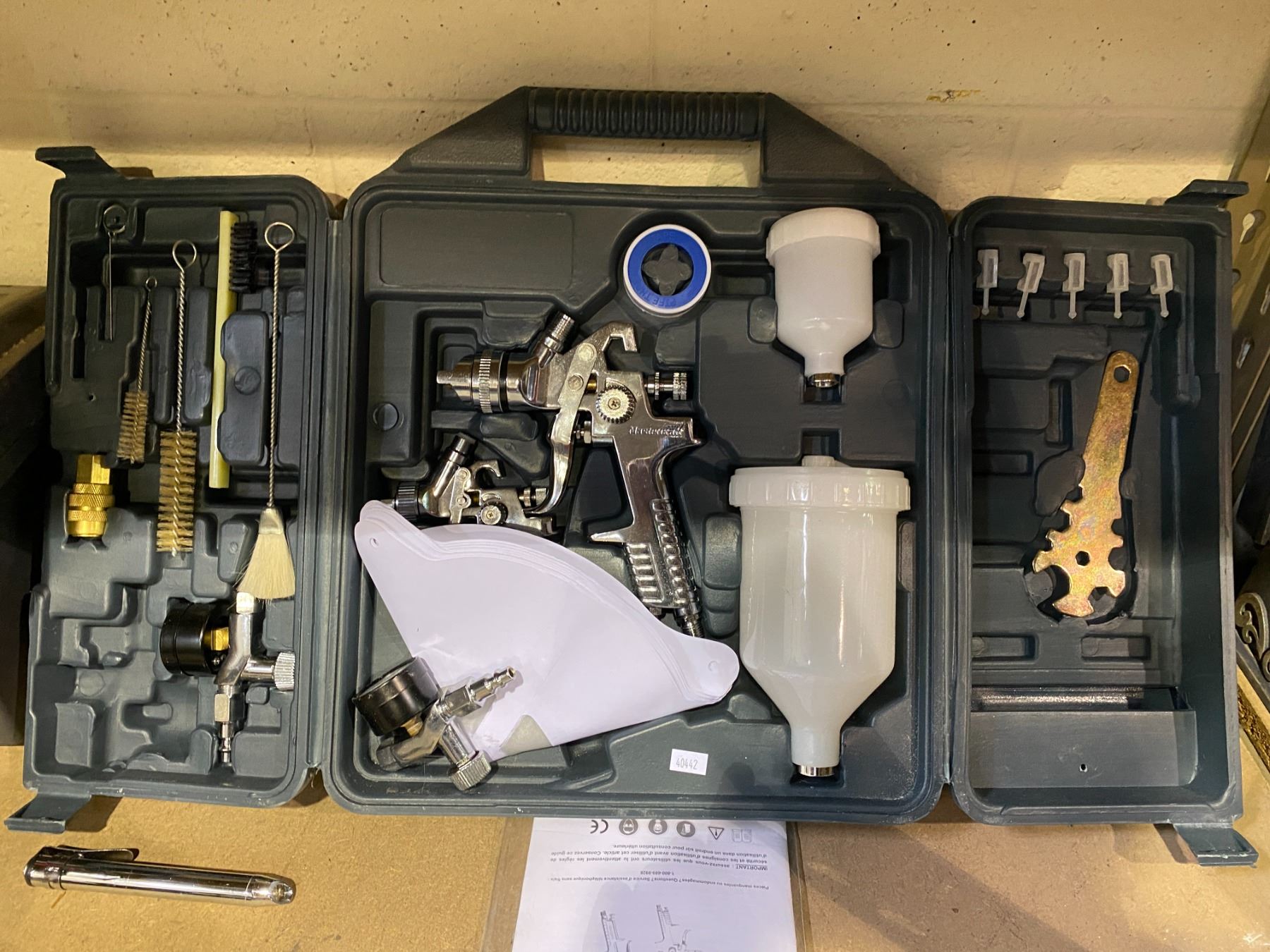 MASTERCRAFT AIR-POWERED GRAVITY-FEED SPRAY GUN KIT WITH ACCESSORIES, TOOL BOX, & MORE