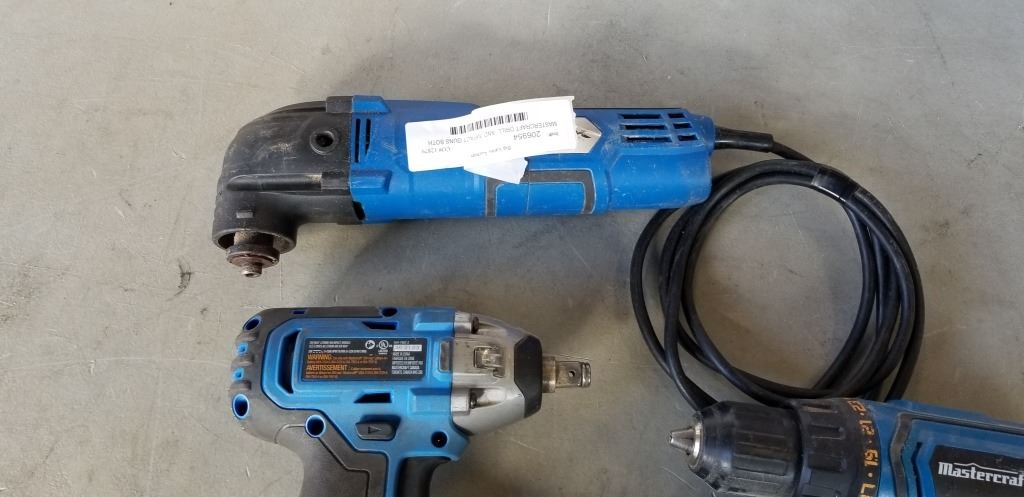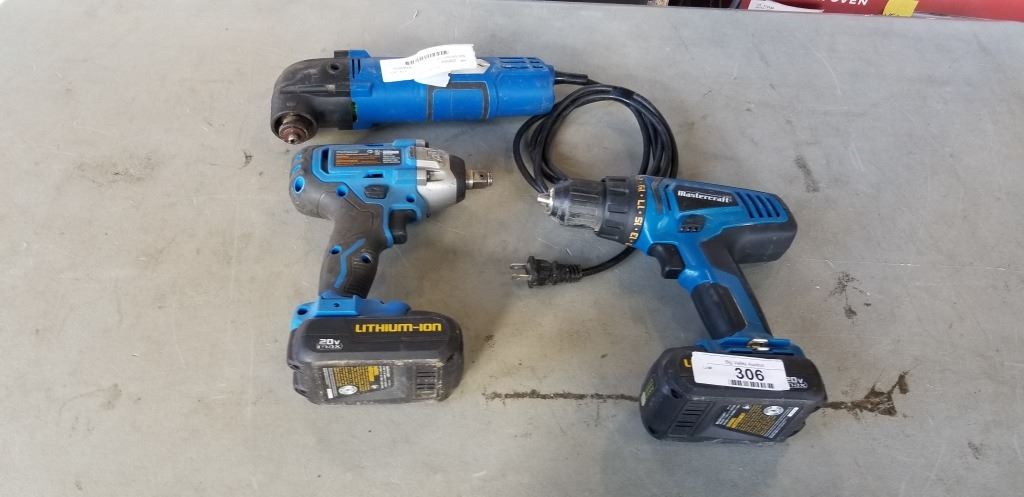 MASTERCRAFT DRILL, AND IMPACT GUNS BOTH WITH 20V BATTERIES, AND ROCK GRINDER, ALL TESTED WORKING