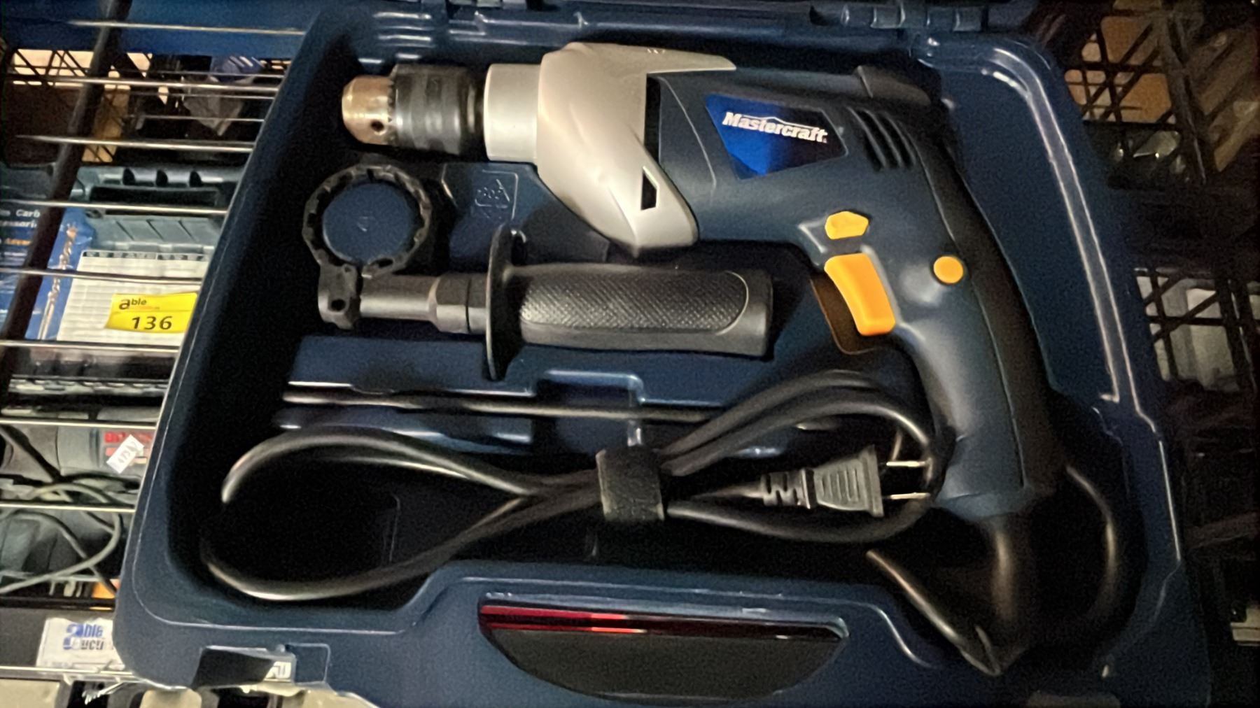 MASTERCRAFT ELECTRIC DRILL WITH DRILL BITS IN A HARD TRANSPORT CASE