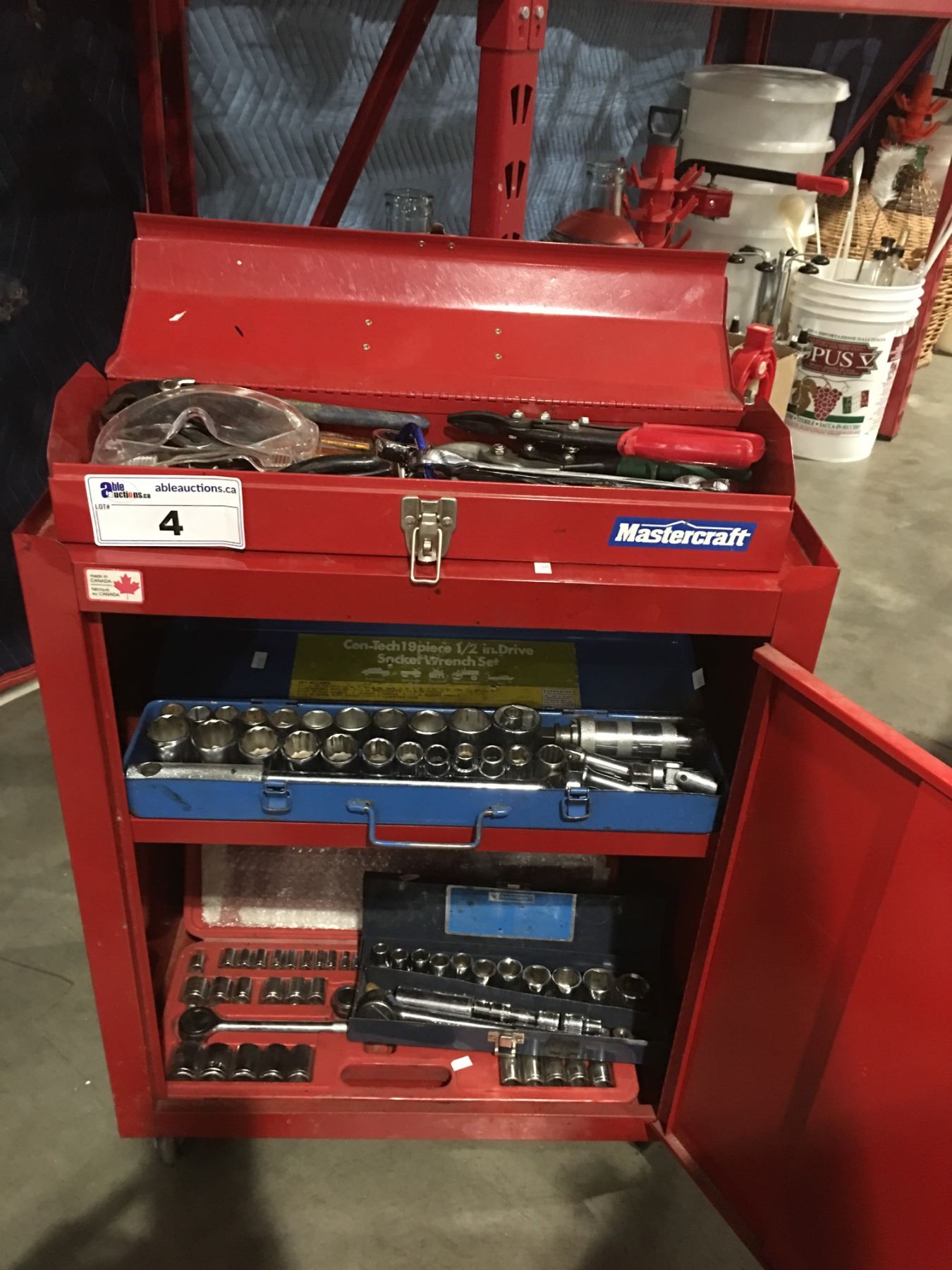 MASTERCRAFT ROLLING TOOL CHEST & SMALL TOOLBOX WITH ASSORTED TOOLS & SOCKET SETS