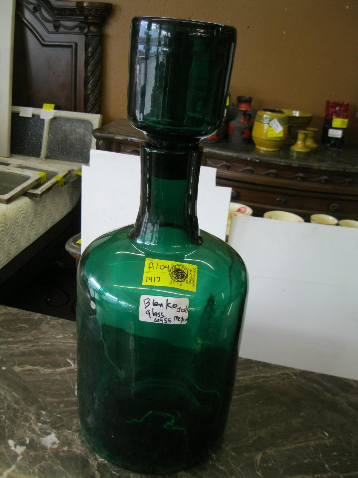 MATCHING LG. GREEN GLASS BLENKO JOEL MEYER VASE