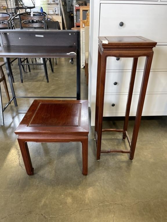 MATCHING ROSEWOOD PLANT STAND AND SIDE TABLE