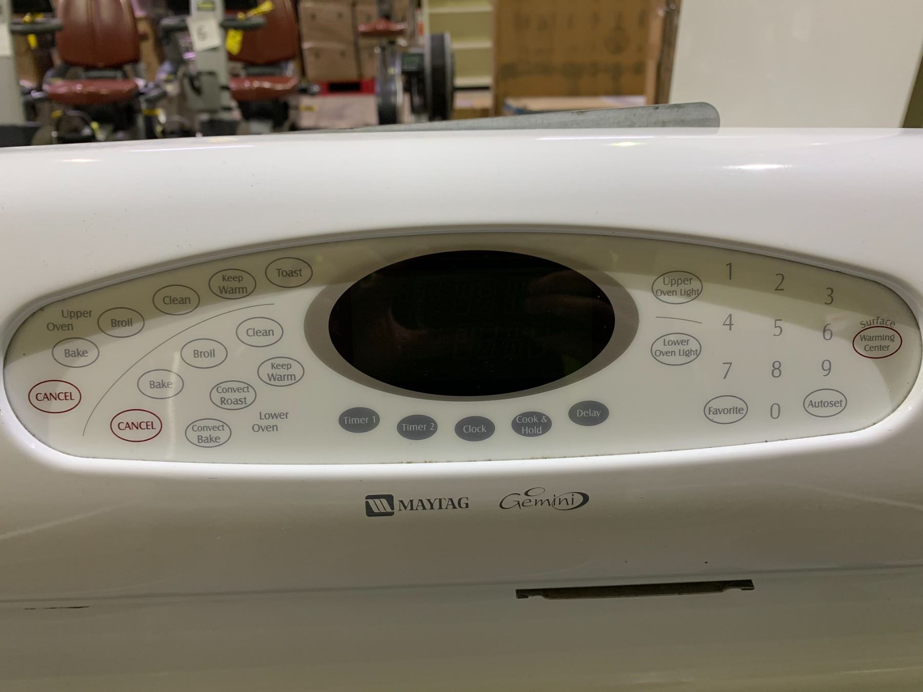 MAYTAG 4 BURNER 1 WARMER ELECTRIC STOVE WITH DUAL OVEN