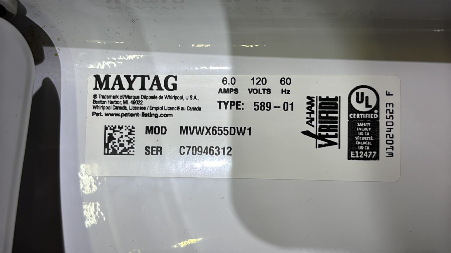 MAYTAG BRAVOS WHITE 27"W TOP ENTRY CLOTHES WASHER