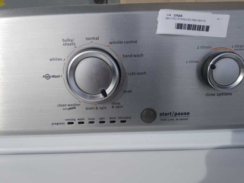 MAYTAG STAINLESS AND WHITE COMMERCIAL TECHNOLOGY HE WASHER - TESTED AND WORKING