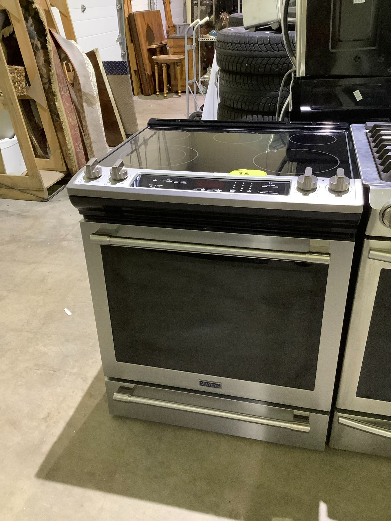 MAYTAG STAINLESS STEEL ELECTRIC GLASS TOP STOVE