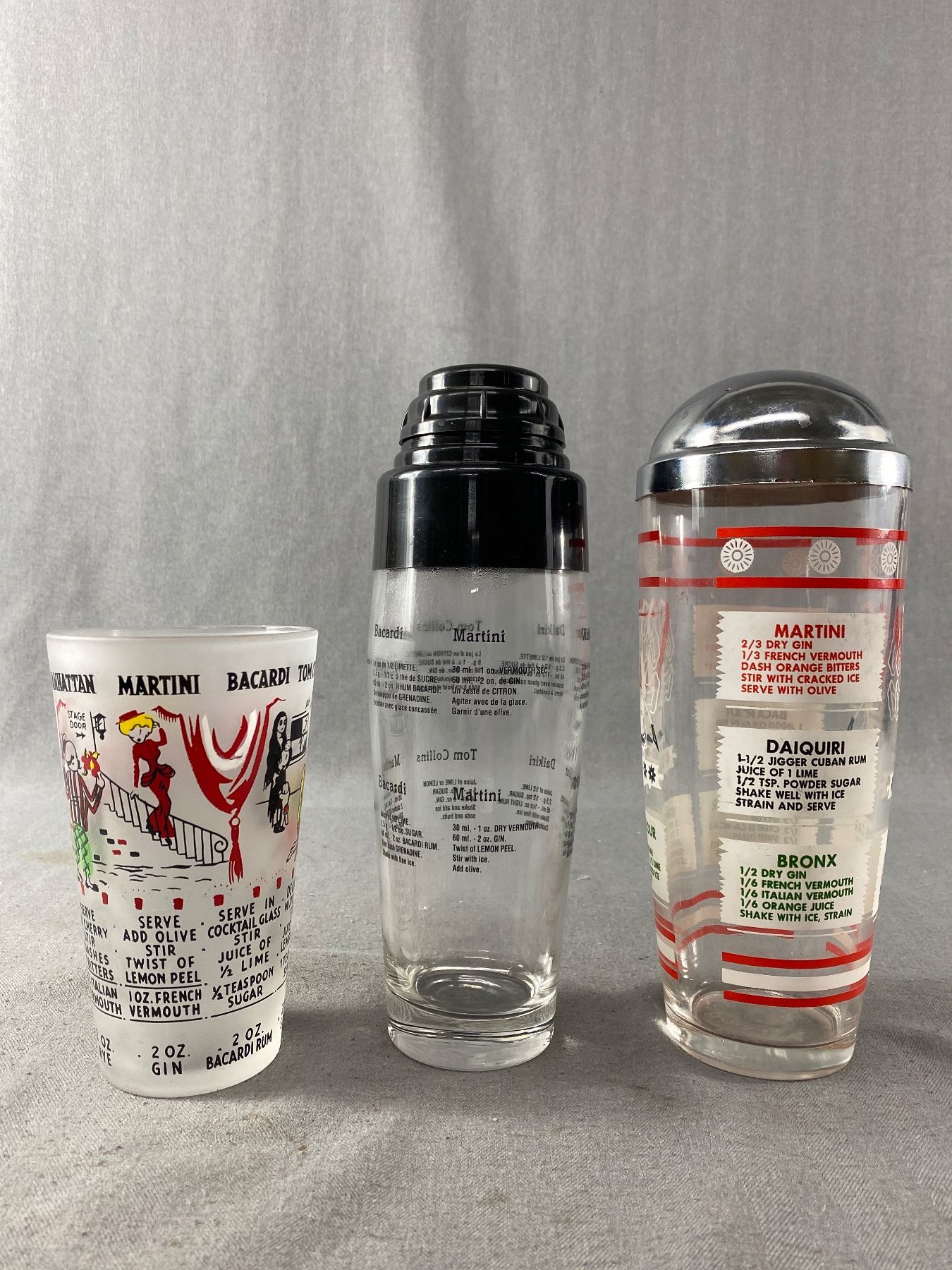 MCM Barware - Glass Cocktail Shakers w/ Drink Recipes