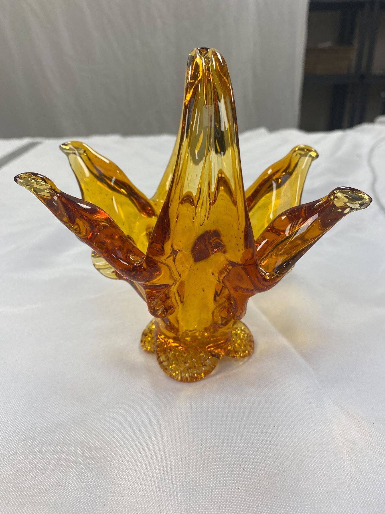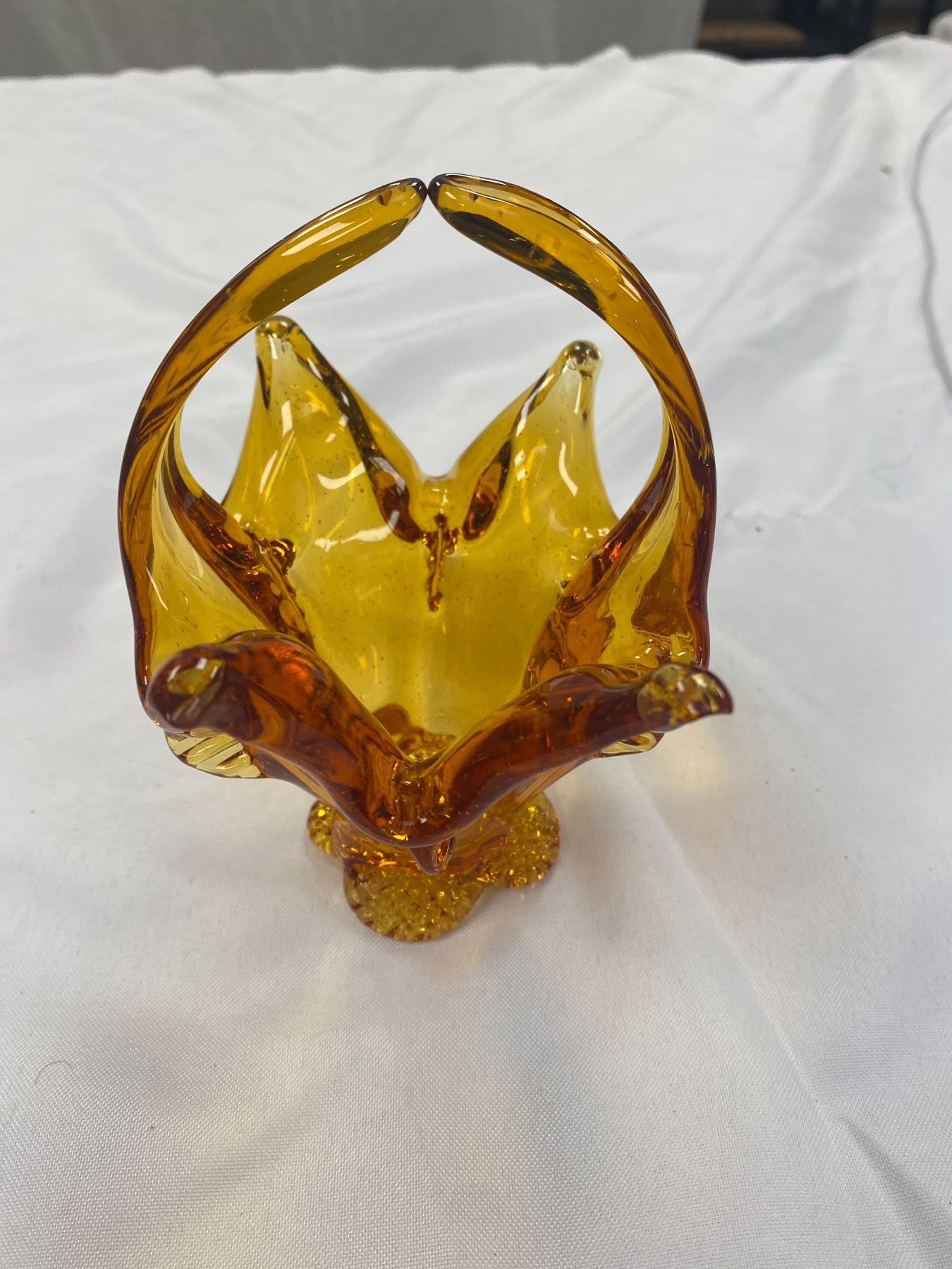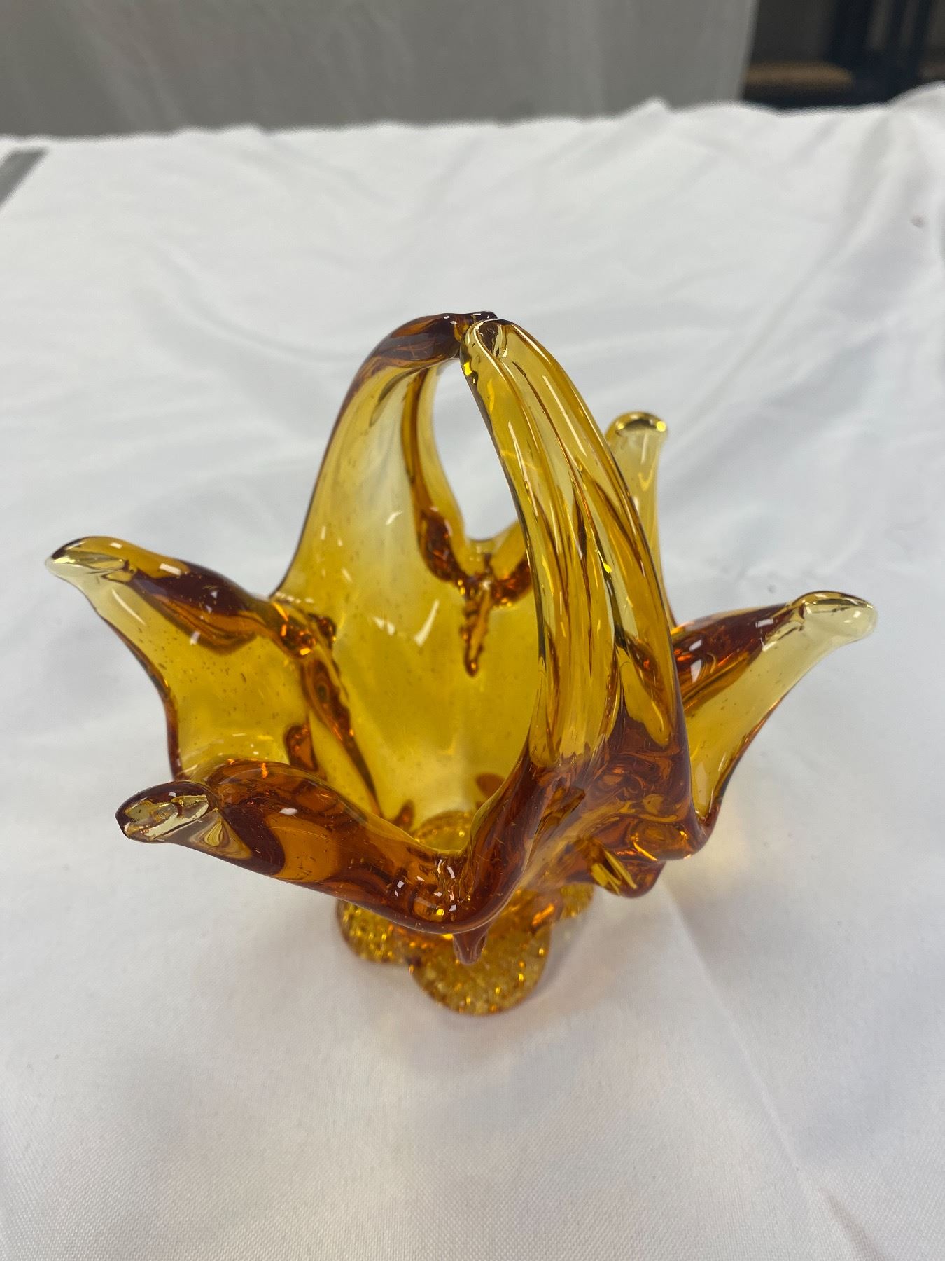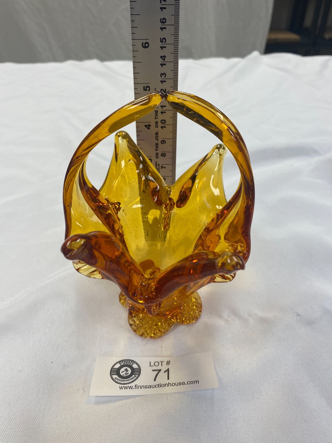 MCM Chalet Style Hand Blown Art Glass with Split Handle 5 x 5"