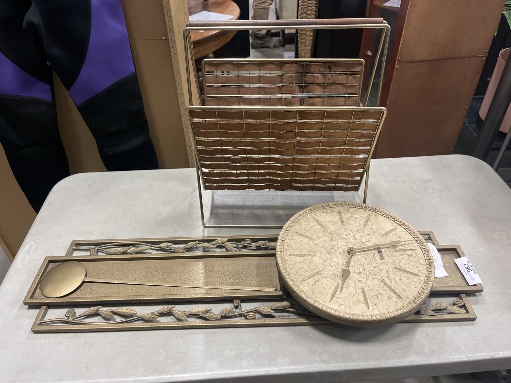 MCM MAGAZINE RACK, NAPKIN HOLDER AND WALL CLOCK
