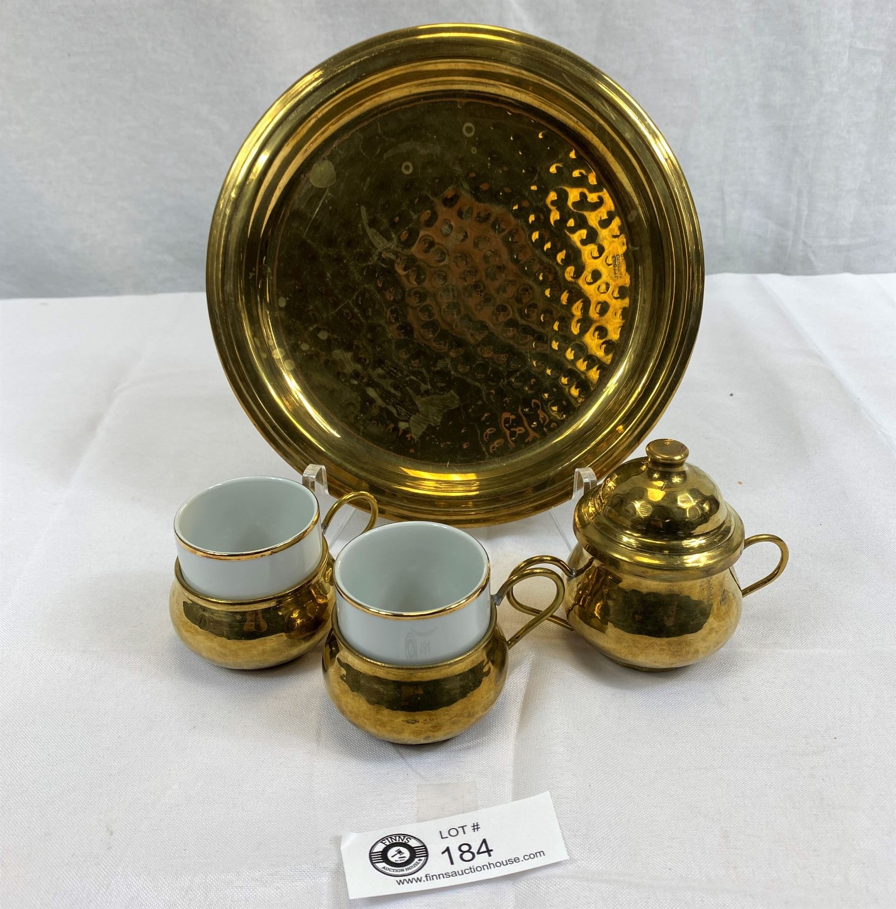 MCM Ottone Barruto A Mano Hammered Brass 8.5' Tray With Espresso Cups And Sugar Made In Italy