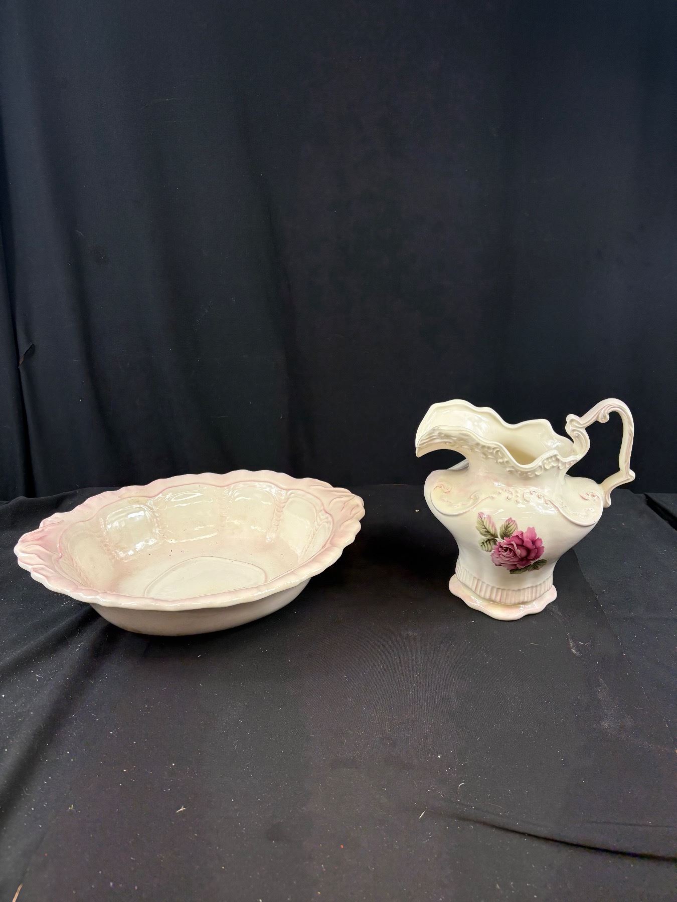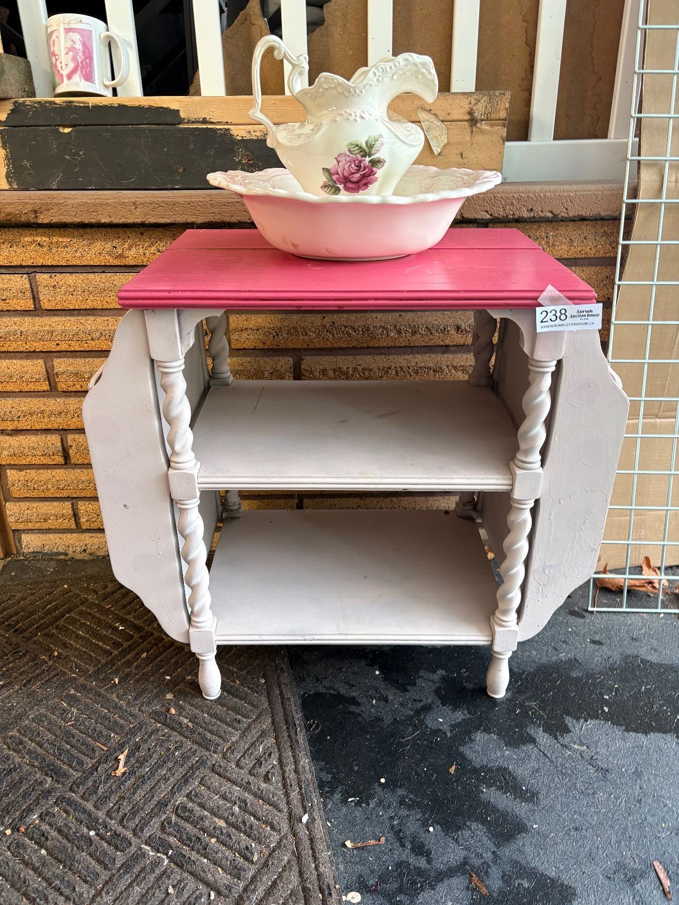 MCM Pink End Table w/ Wash Basin and Pitcher