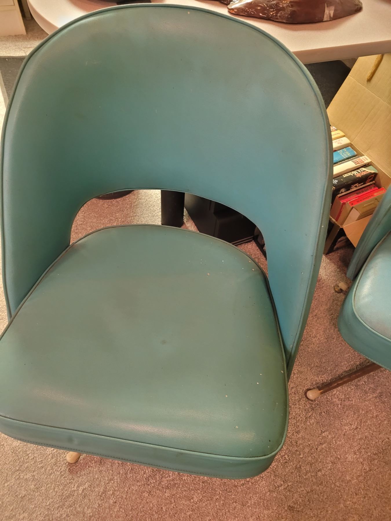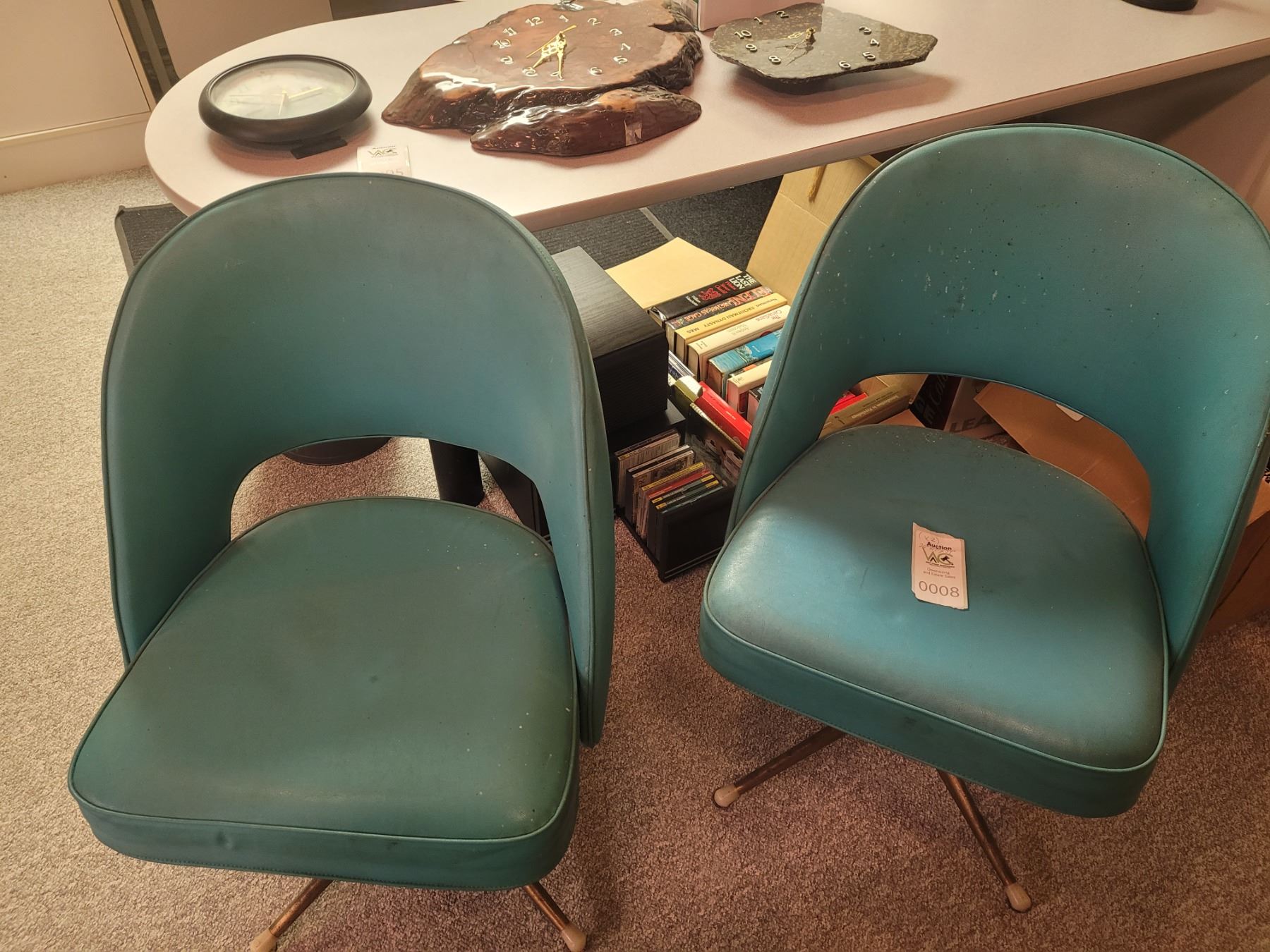 2 swivel vinyl tub back chairs. Pickup at 11 am