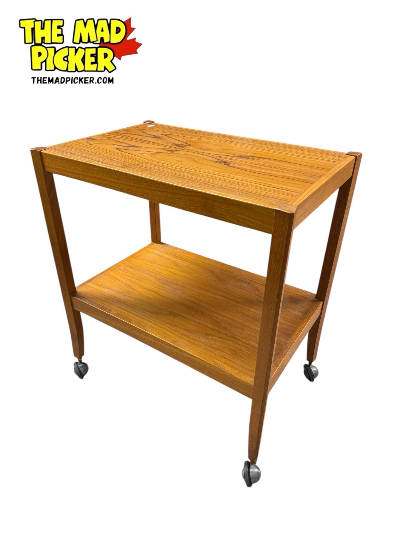 MCM Teak Side Table on Casters - 16" x 24" x 27" Tall