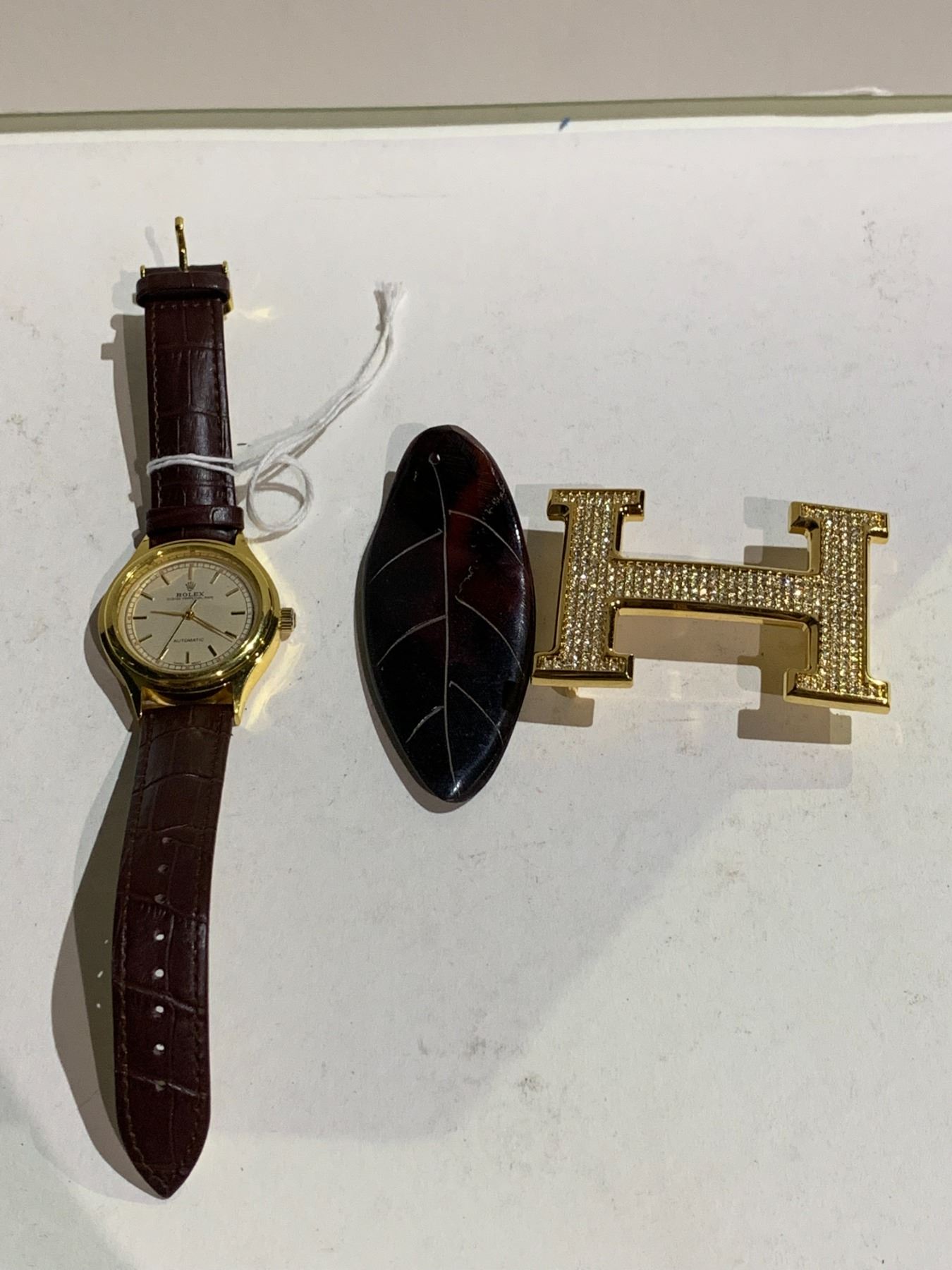 MECHANICAL WRIST WATCH AND BELT BUCKLE