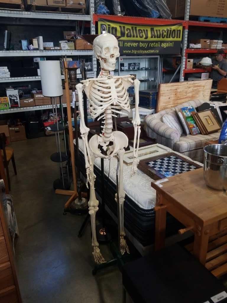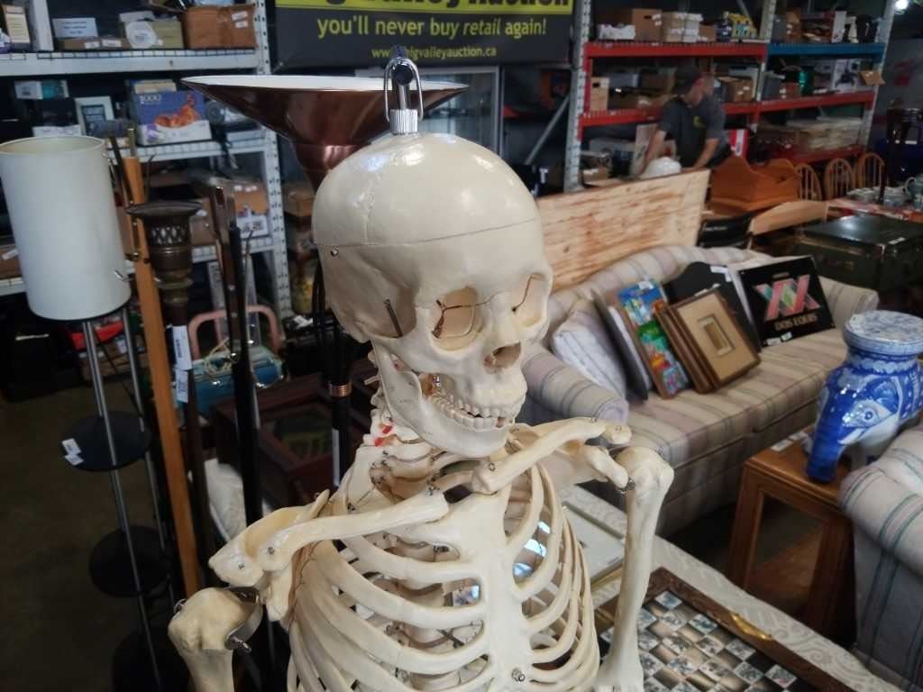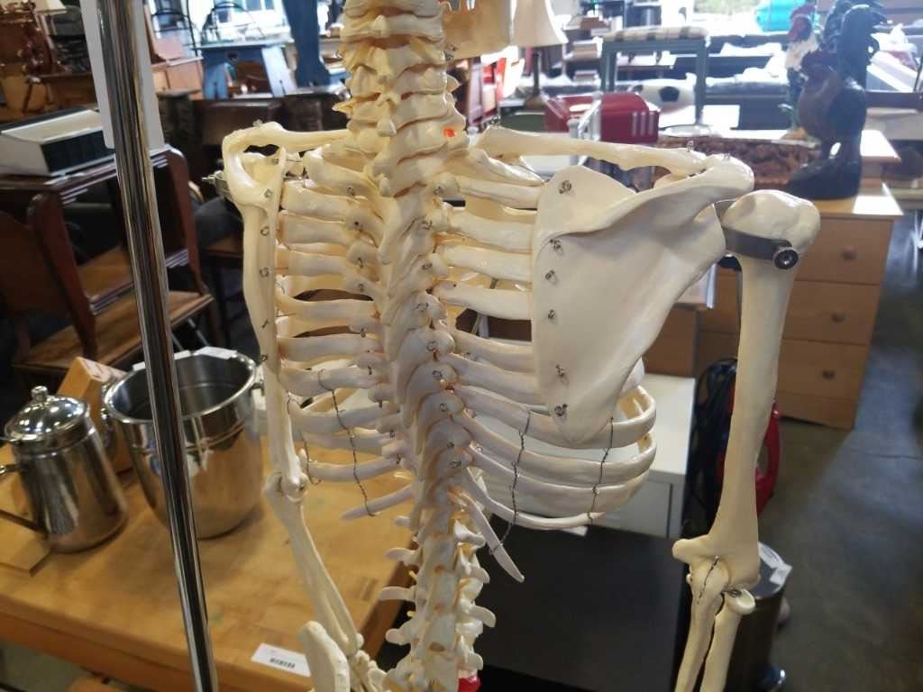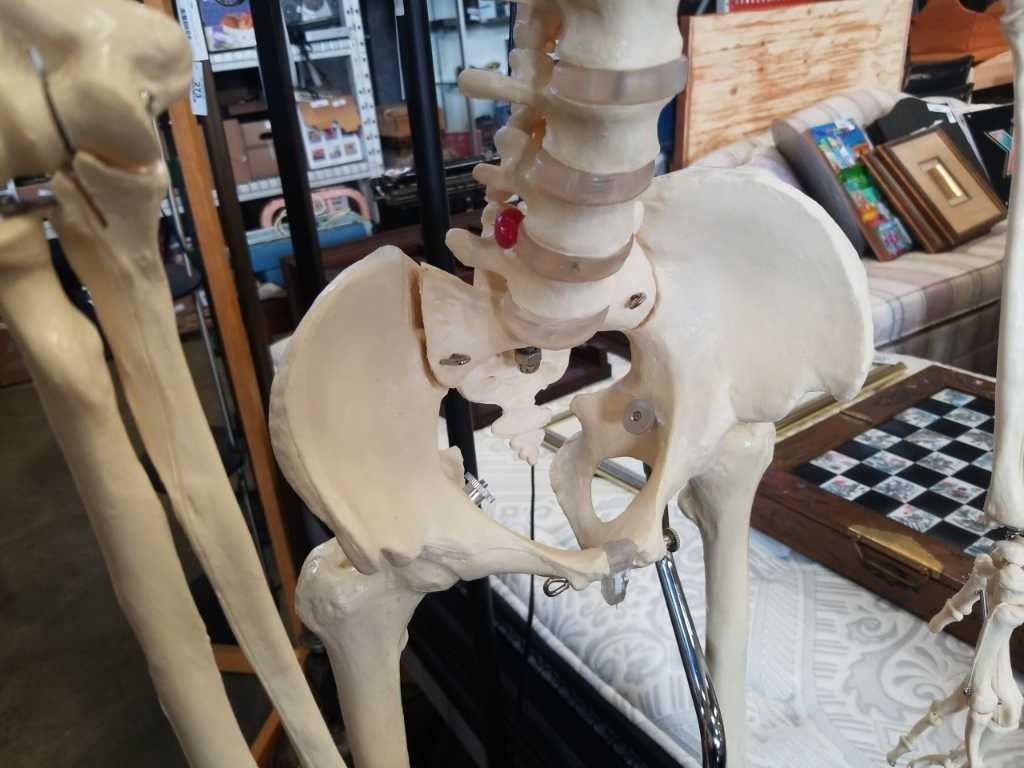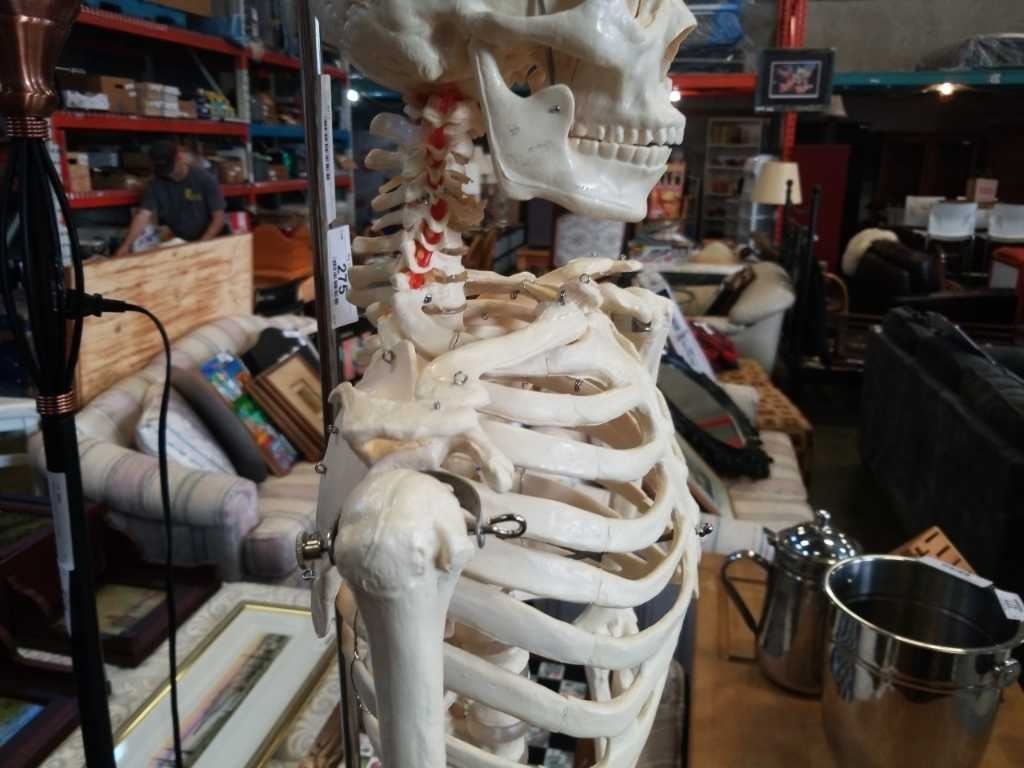 MEDICAL ANATOMICAL SKELETON ON CAST IRON ROLLING STAND