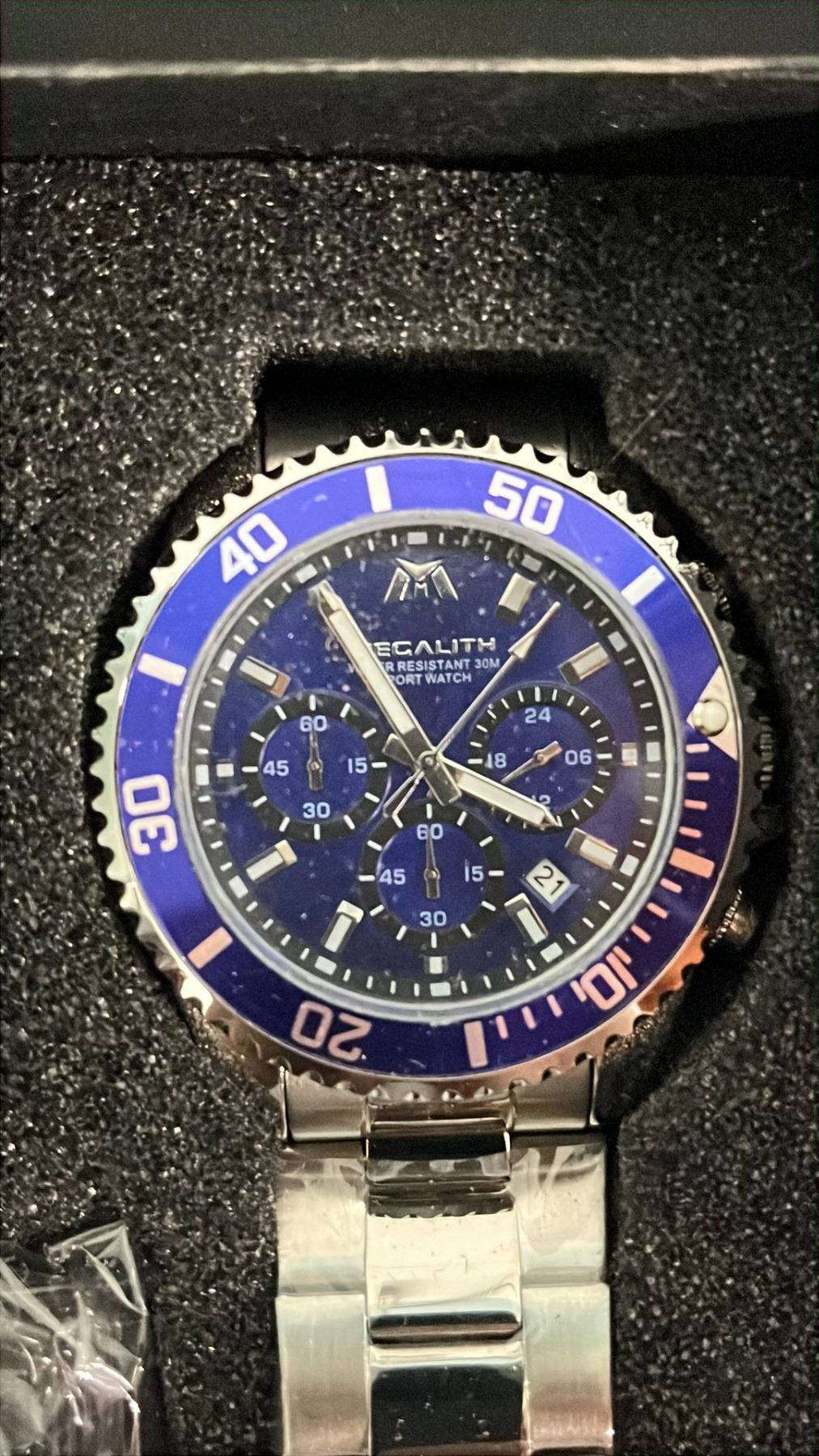 MEGALITH MODEL 1 ONE-TONE WATCH WITH SILVER & BLUE FACE