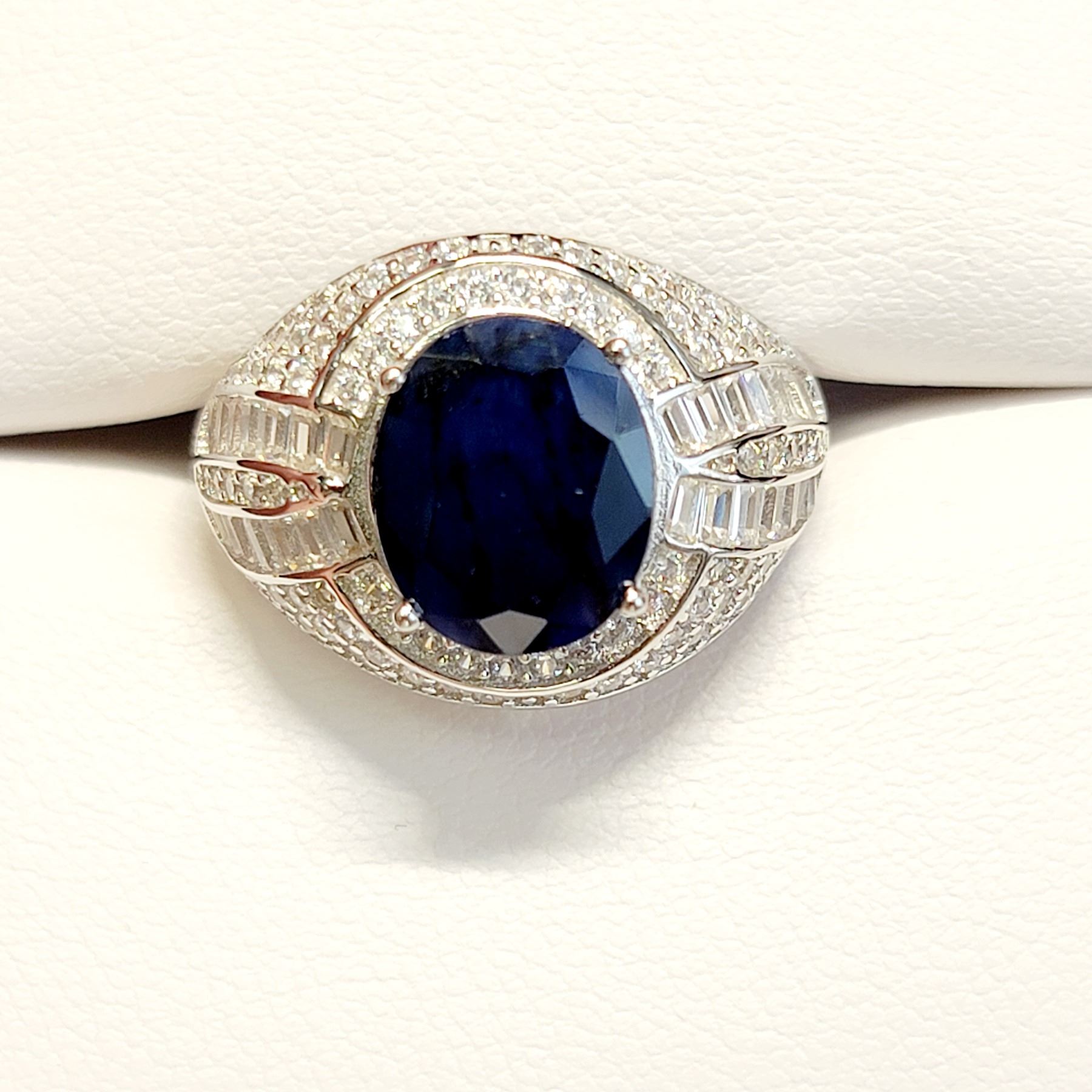 MENS SILVER SAPPHIRE(4.15CT) RING SIZE 10