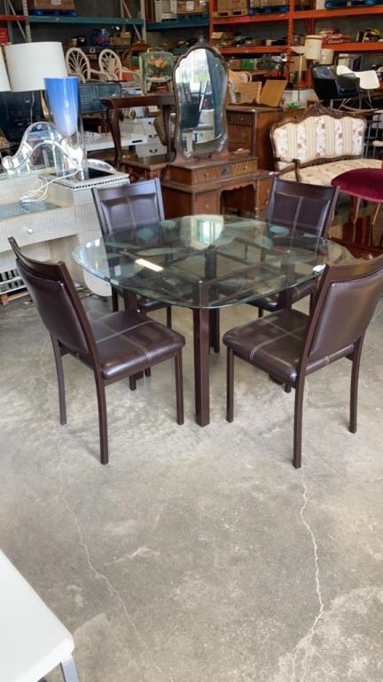 METAL BASE GLASSTOP TABLE WITH 4 CHAIRS