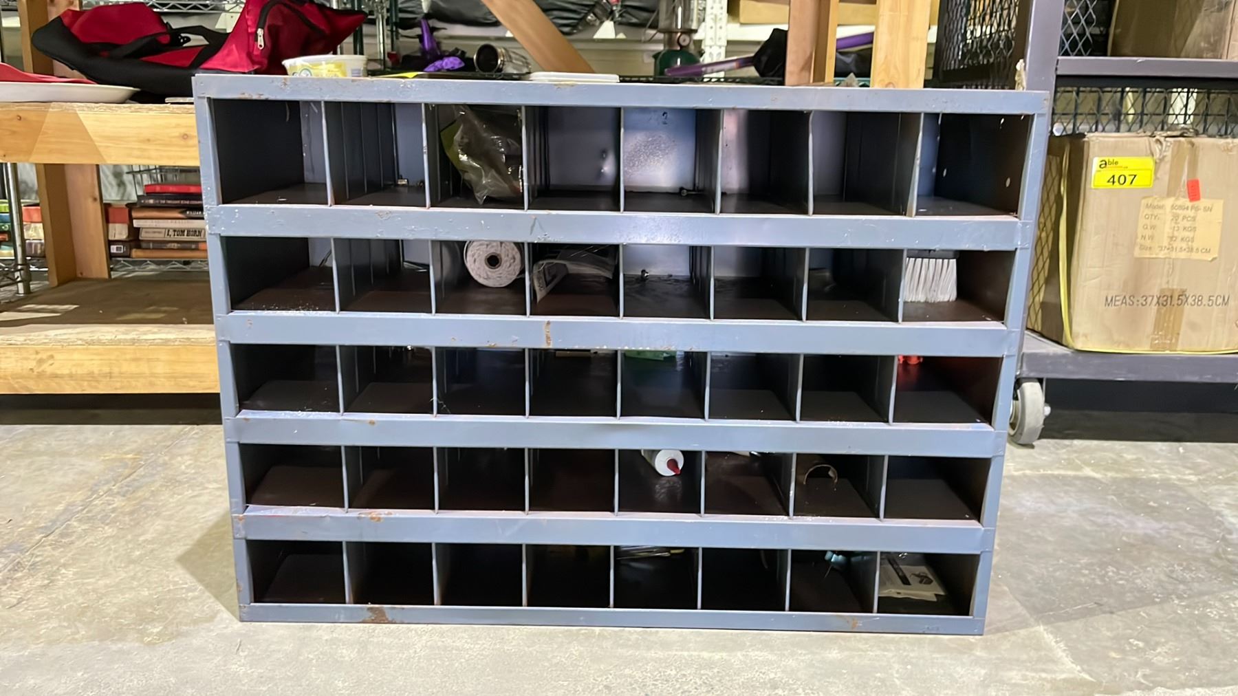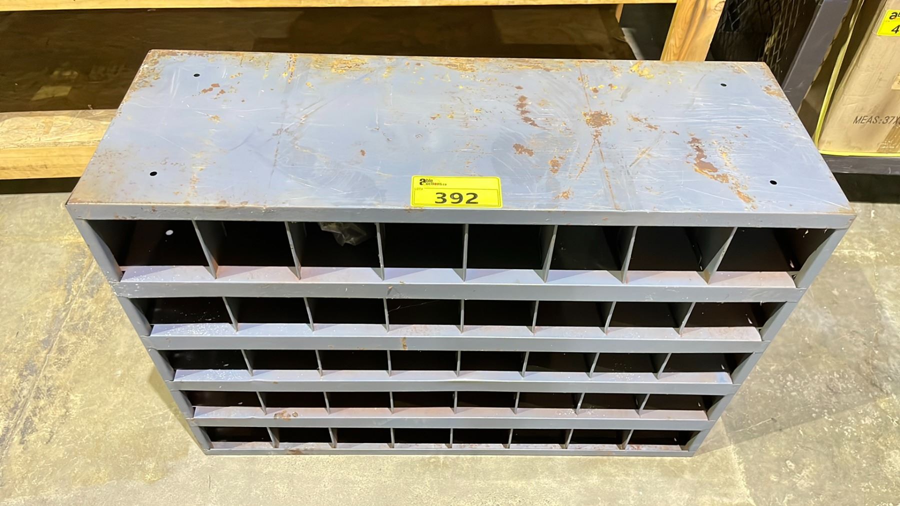 METAL BENCH TOP TOOL/BIT ORGANIZER WITH ASSORTED CONTENTS
