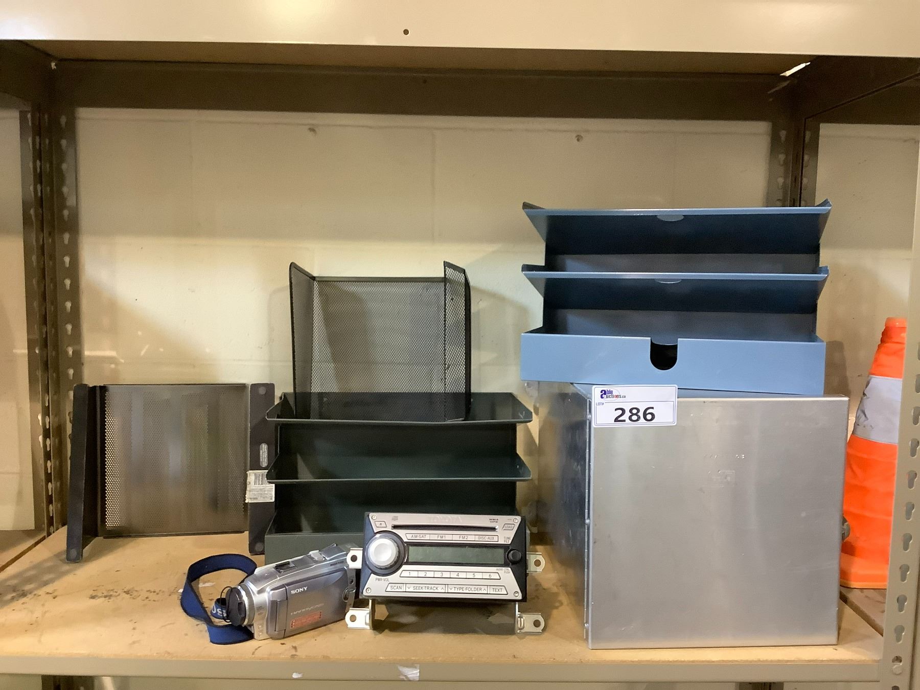 METAL CODE LOCK BOX, TOYOTA RADIO, SONY HANDYCAM, & FILE ORGANIZERS
