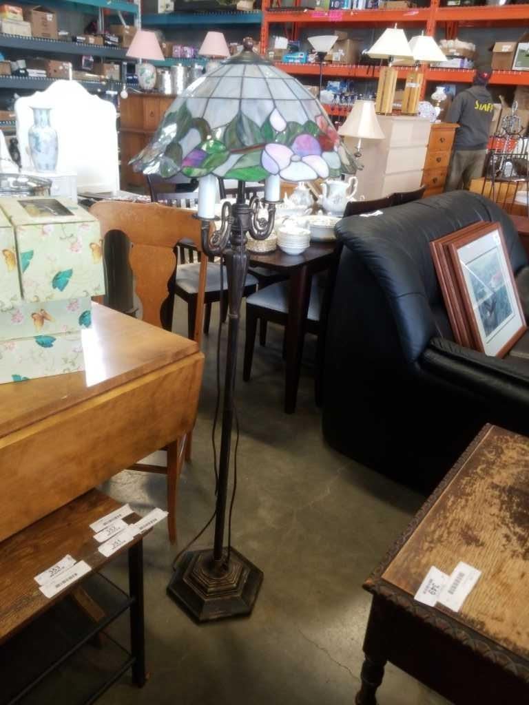 METAL FLOOR LAMP WITH LEADED GLASS SHADE