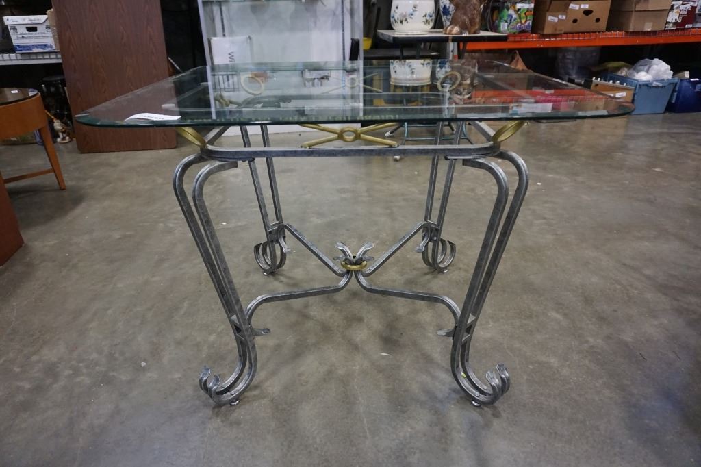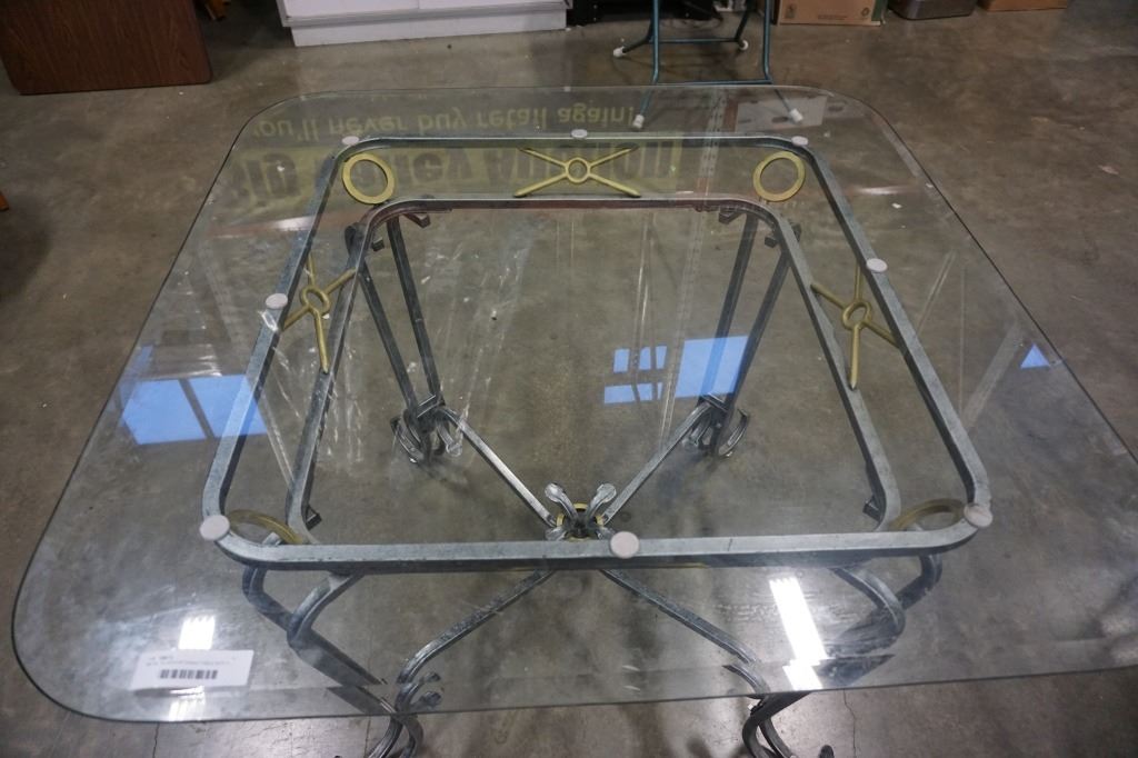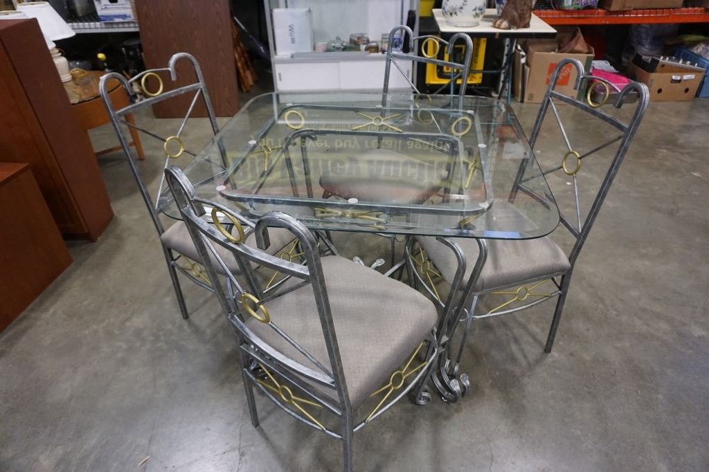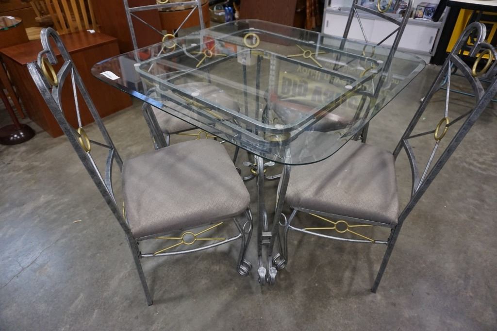 METAL GLASSTOP DINING TABLE WITH 4 CHIARS