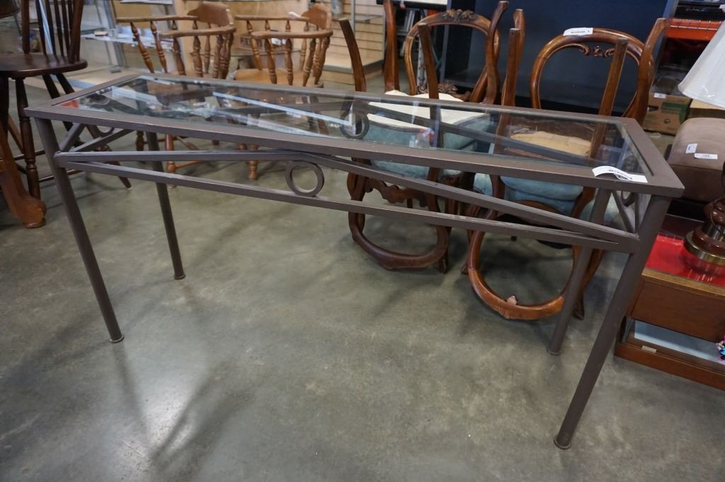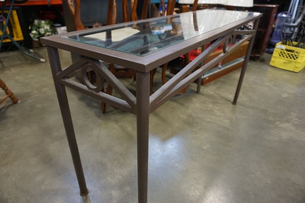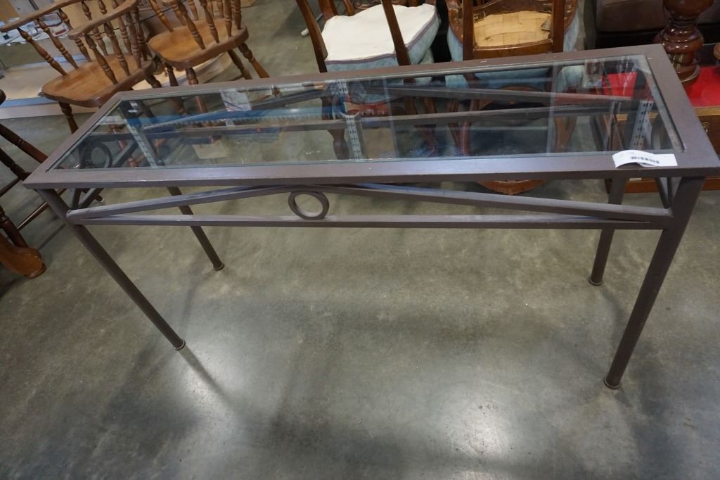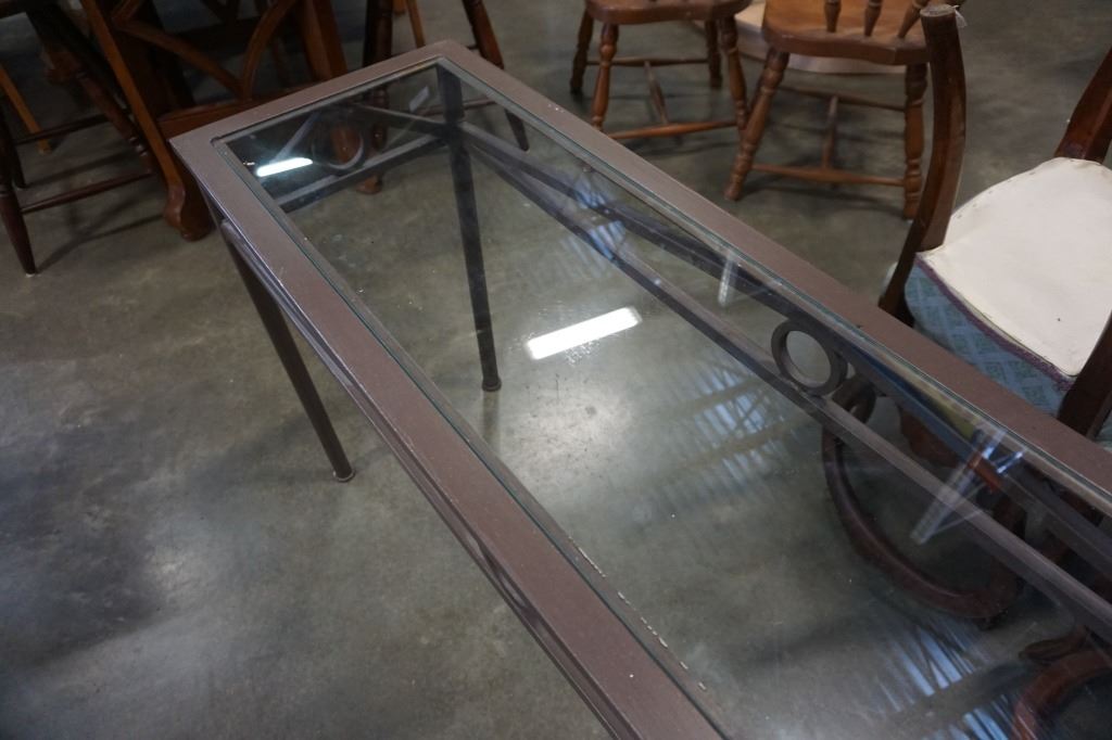 METAL GLASSTOP SOFA TABLE - 54 INCHES WIDE X 16 DEEP X 29 TALL