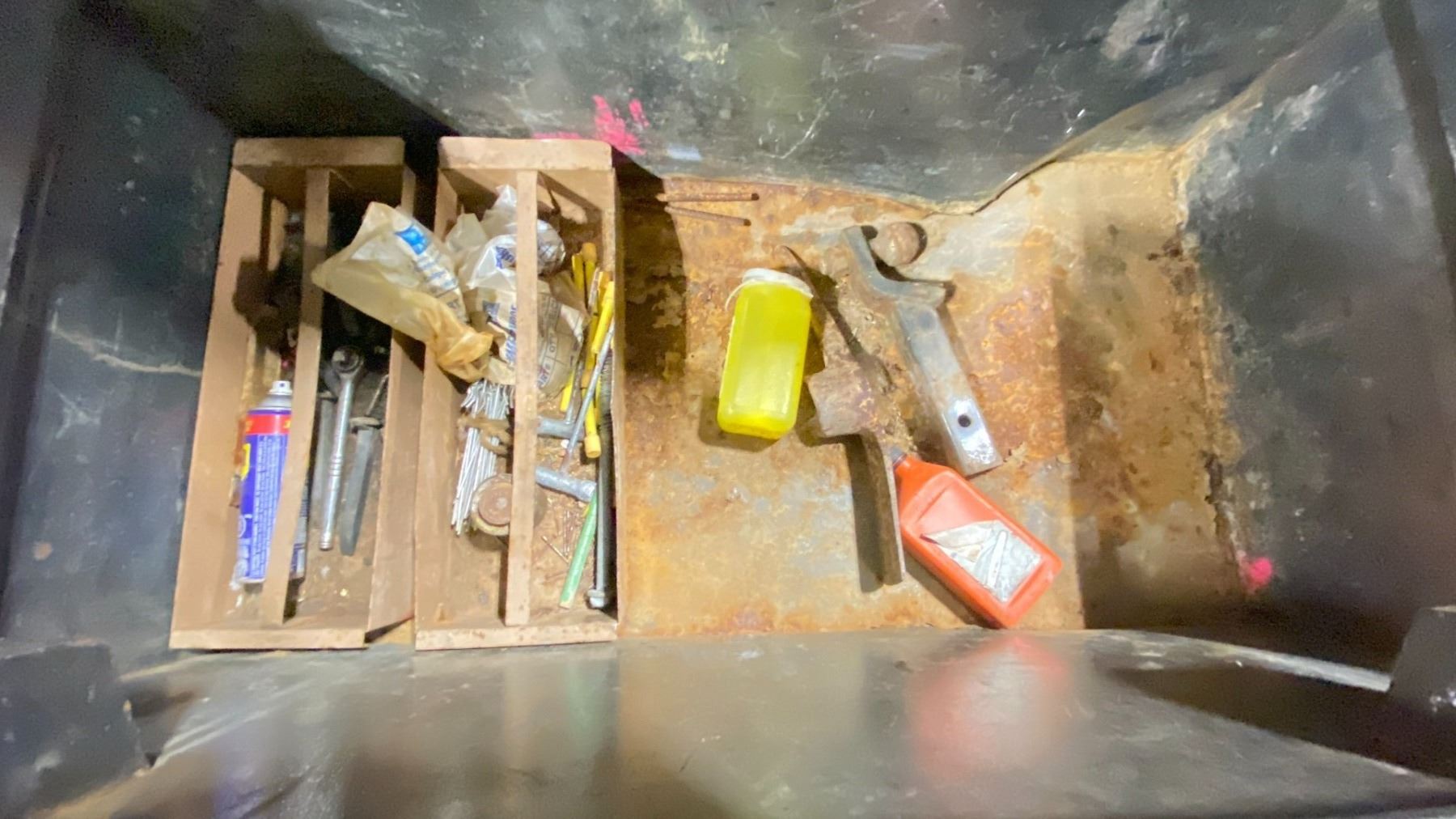 METAL JOBSITE TOOLBOX WITH ASSORTED CONTENTS INCLUDED