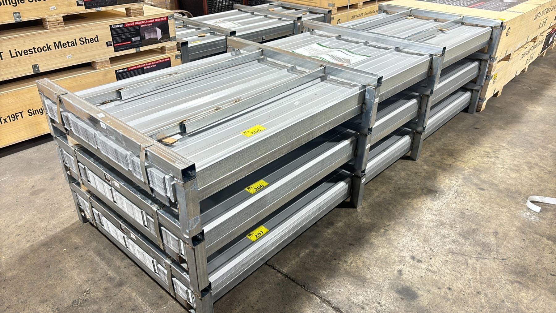 METAL PALLET CRATE OF 100 PCS OF ALLMETAL 10'L GALVALUME STEEL CORRUGATED PANELS