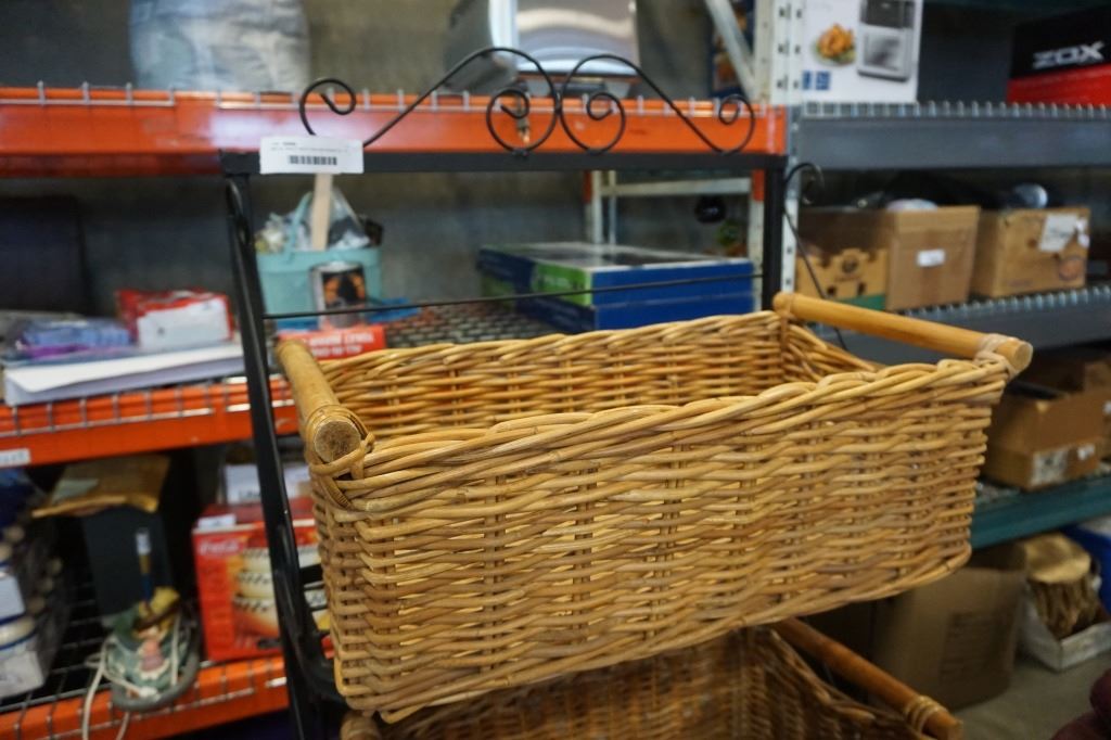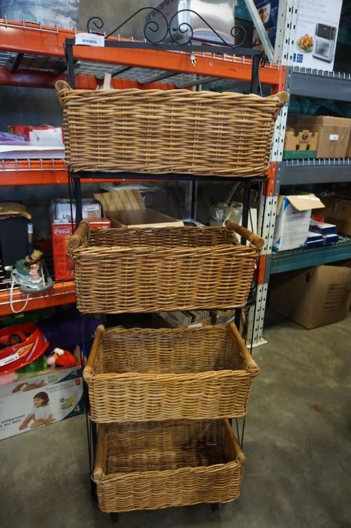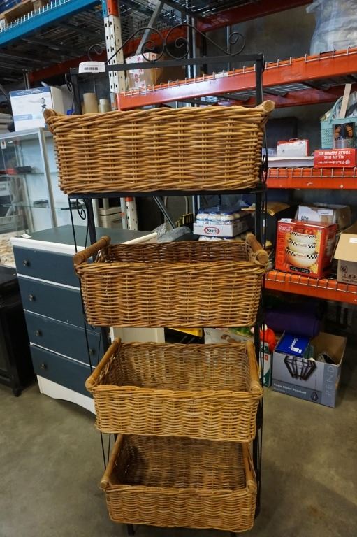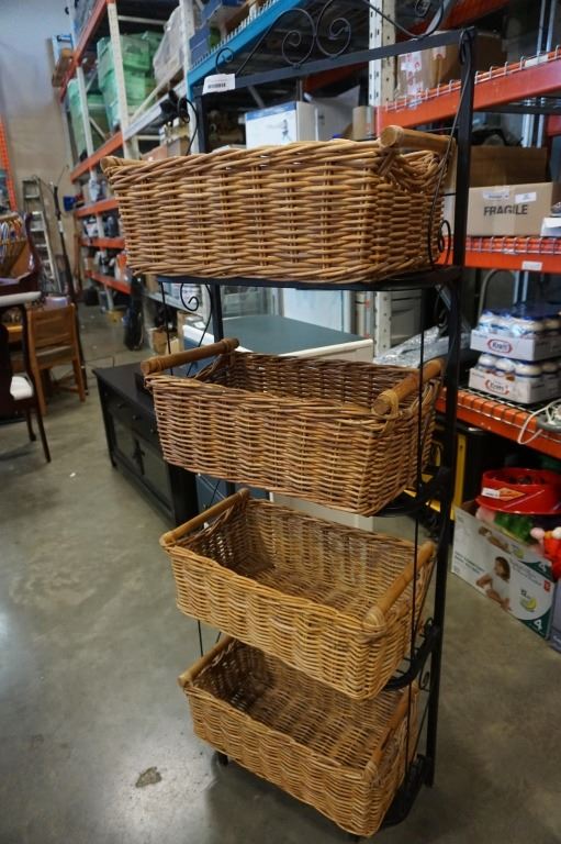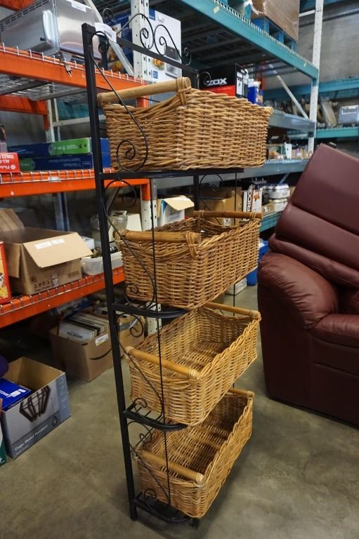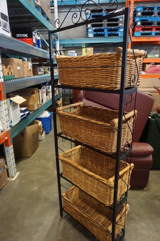 METAL SHELF WITH WICKER BASKETS - 70 INCHES TALL, 2 FEET WIDE