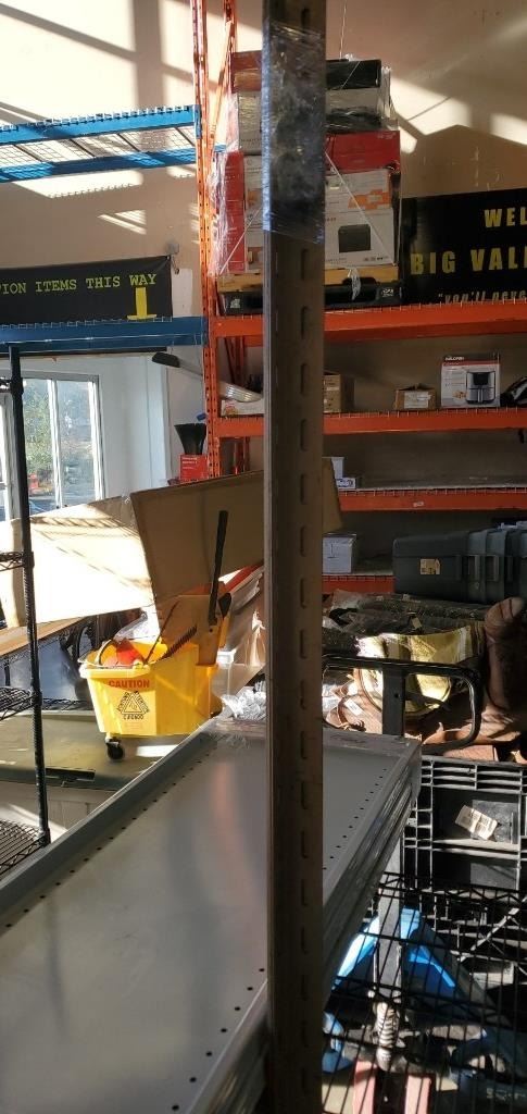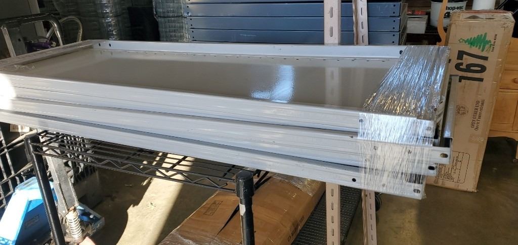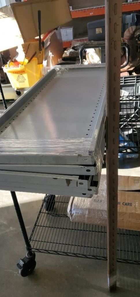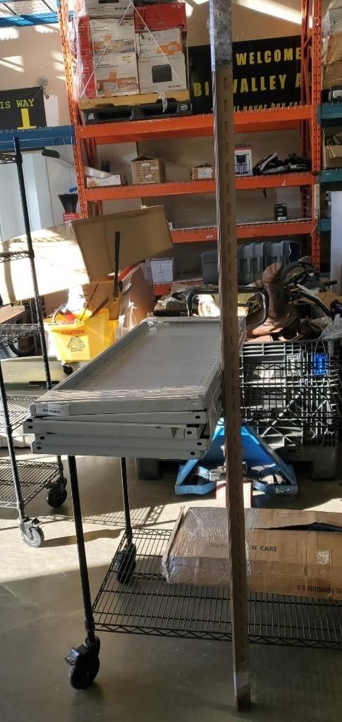 METAL SHELVING UNIT W/ HARDWARE AND 4 SHELVES