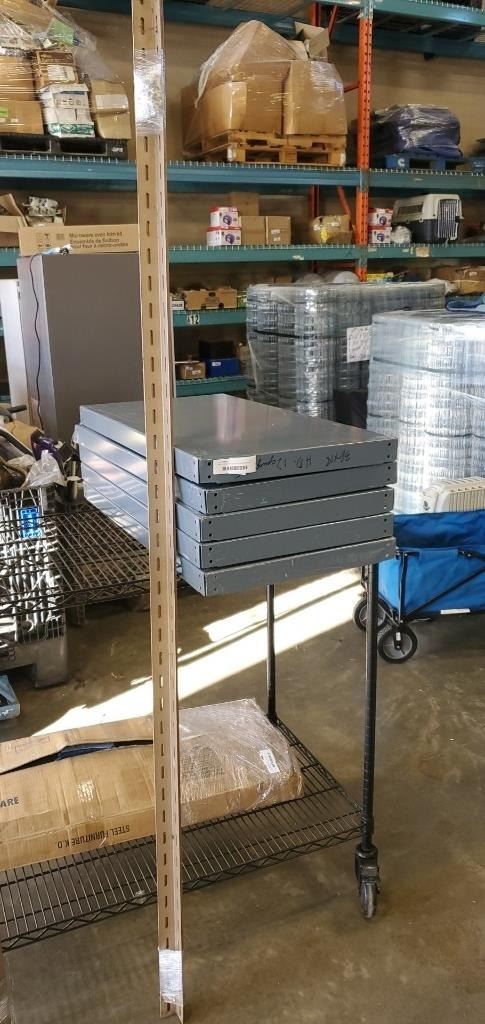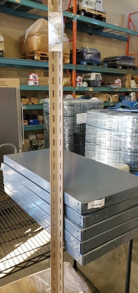 METAL SHELVING UNIT W/ HARDWARE AND 5 SHELVES