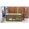 METAL STEAMER TRUNK AND VINTAGE SHOE FORM