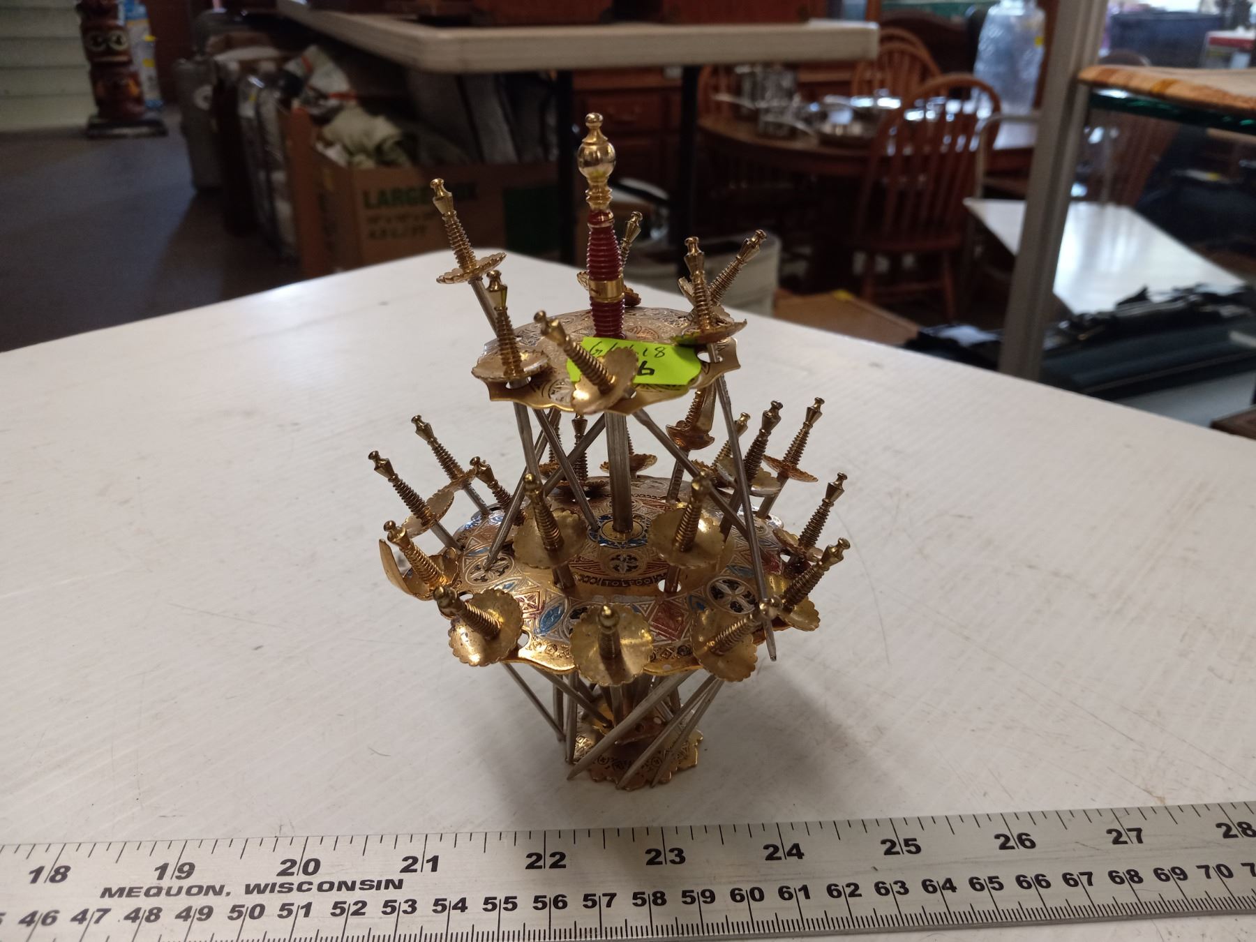 METAL SWORD TOOTHPICK HOLDER W/MINI SWORD TOOTHPICKS