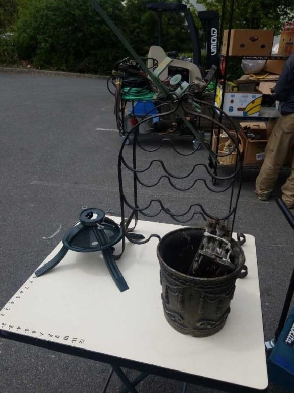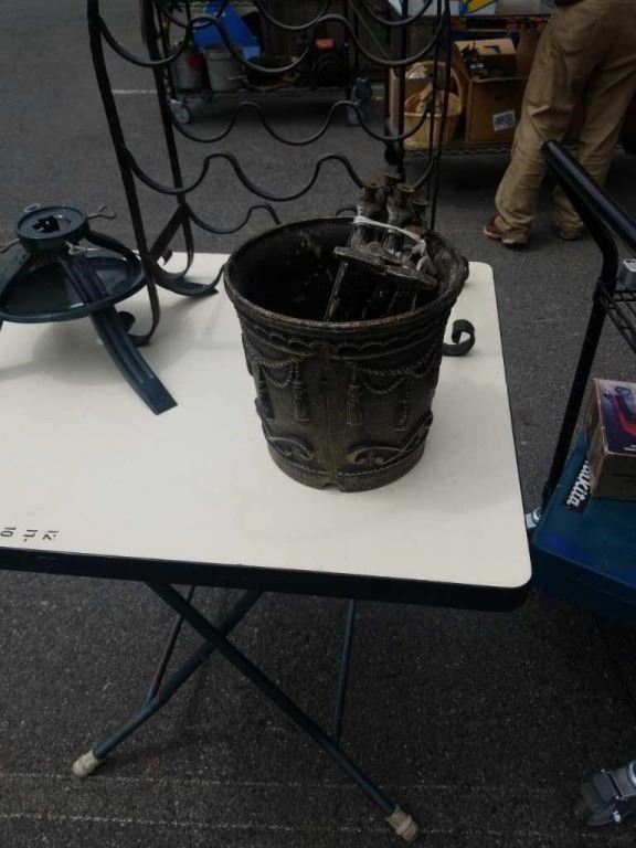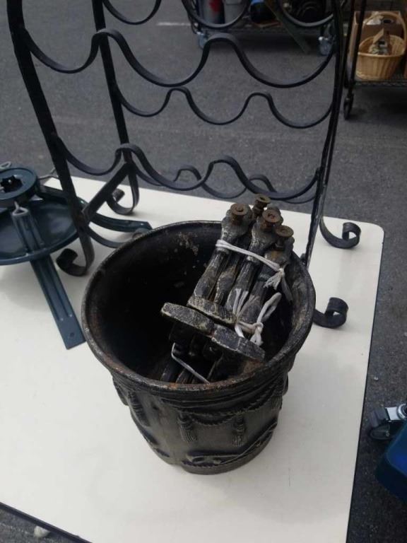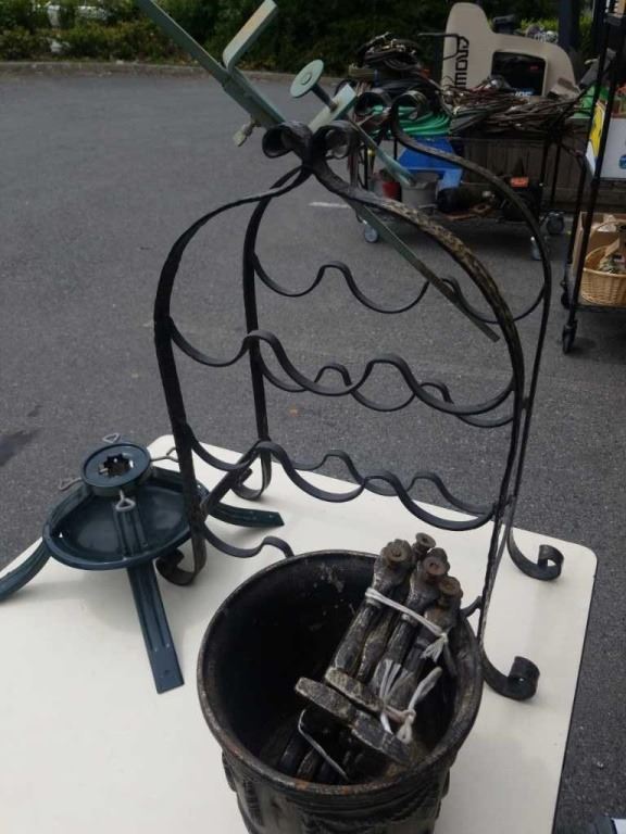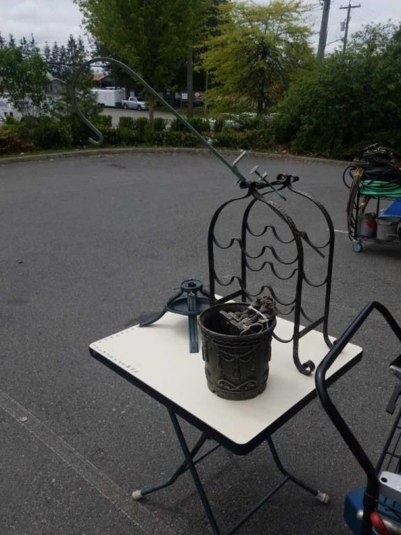 METAL WINE RACK WITH METAL HANGING BASKET STAND CAST IRN STAND AND METAL STAND