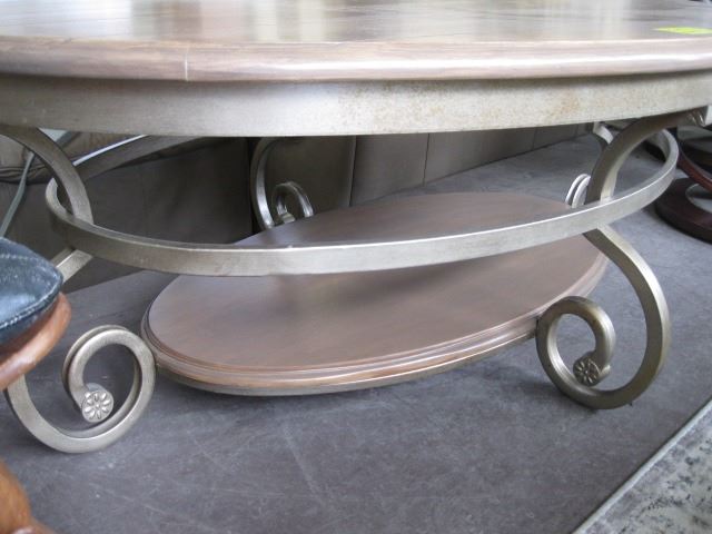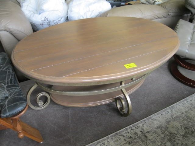 METAL WOOD TOPPED OVAL COFFEE TABLE