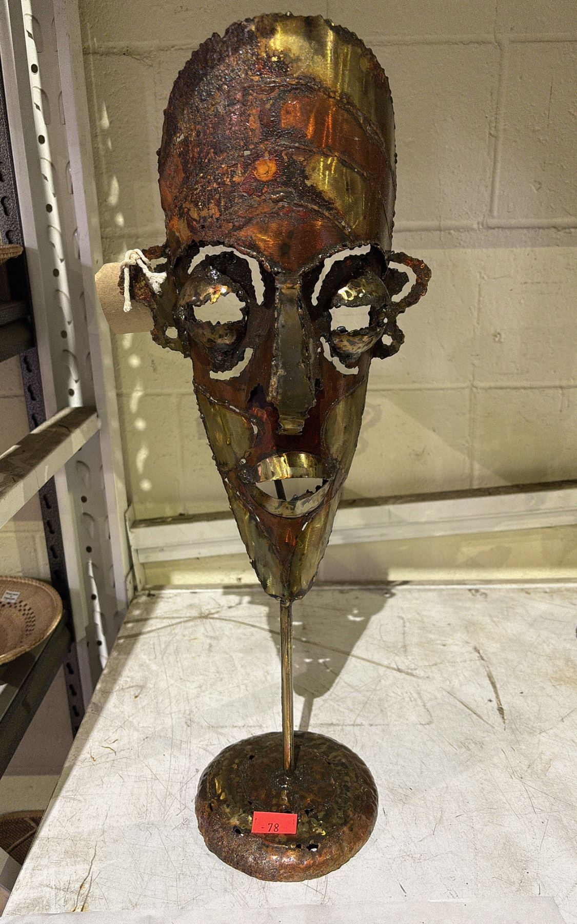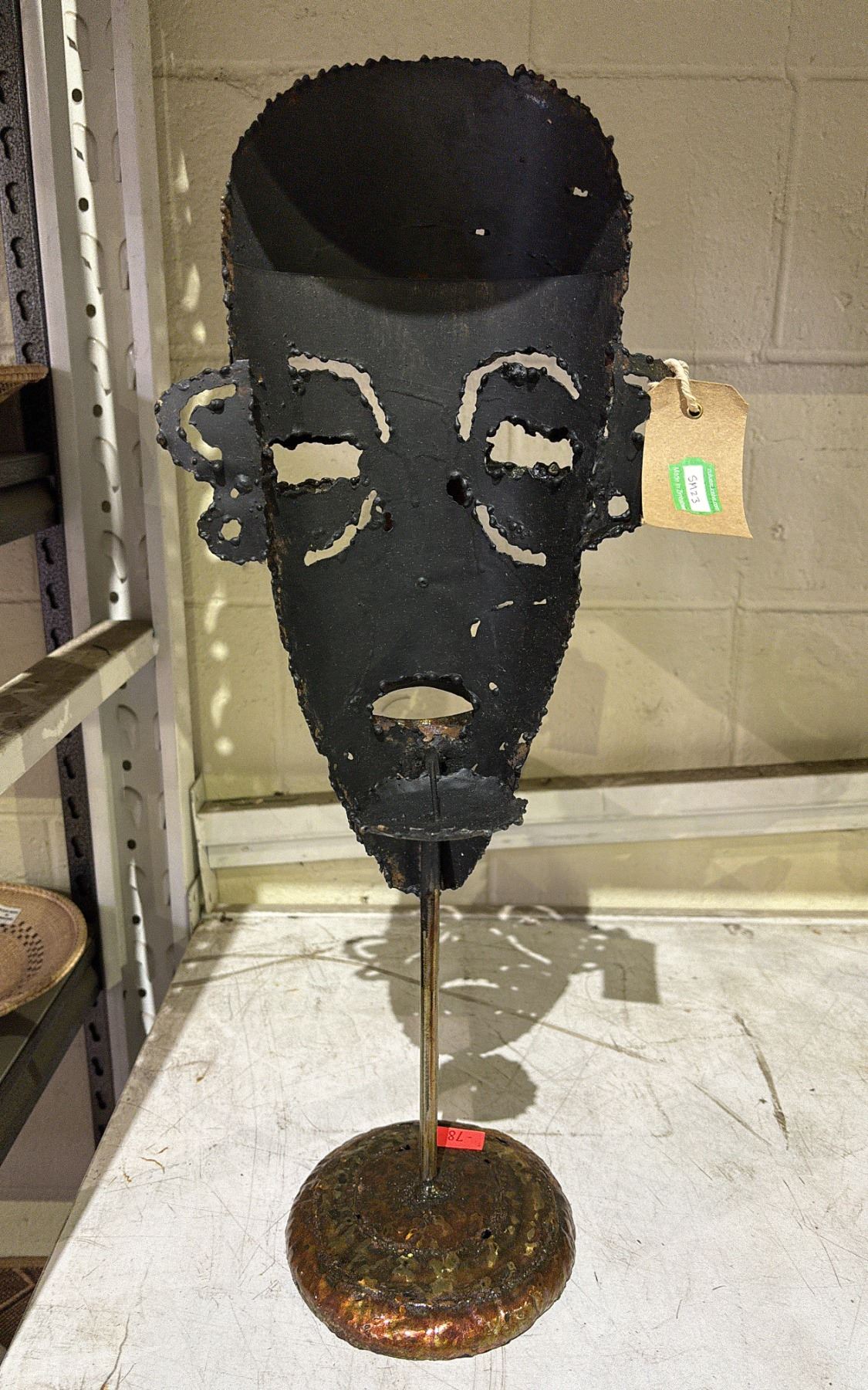 METAL ZULU MASK CANDLE HOLDER 23.5  TALL