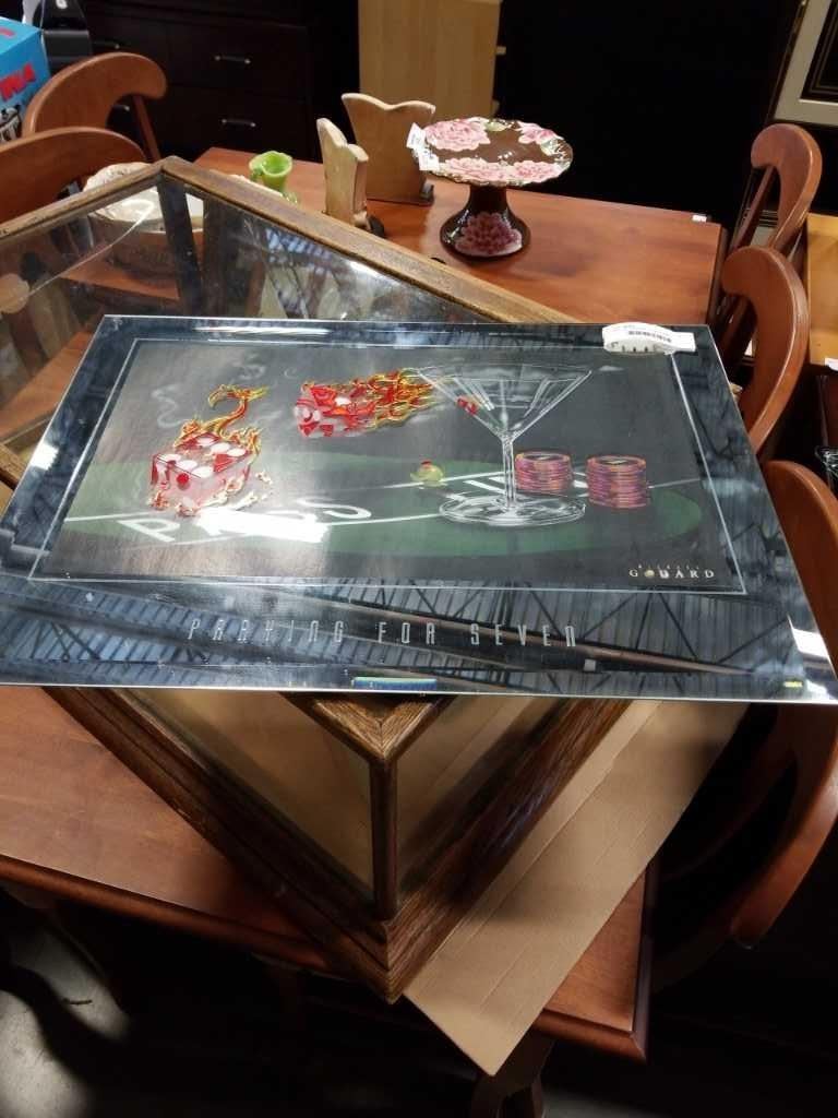 MICHAEL GODDARD GLASS FRAMED OVERLAY ART PRINT PRAYING FOR SEVEN - FRAME HAS 2 CHIPS IN CORNERS
