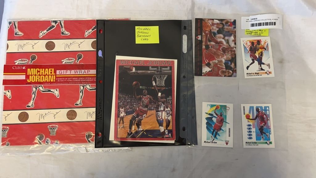 MICHAEL JORDAN COLLECTION, 4 CARDS, GIFT WRAP, JORDAN BDAY CARD