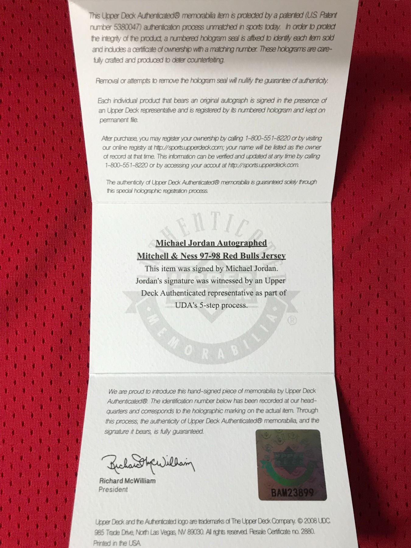 MICHAEL JORDAN SIGNED CHICAGO BULLS MITCHELL AND NESS BASKETBALL JERSEY (UPPER DECK COA)